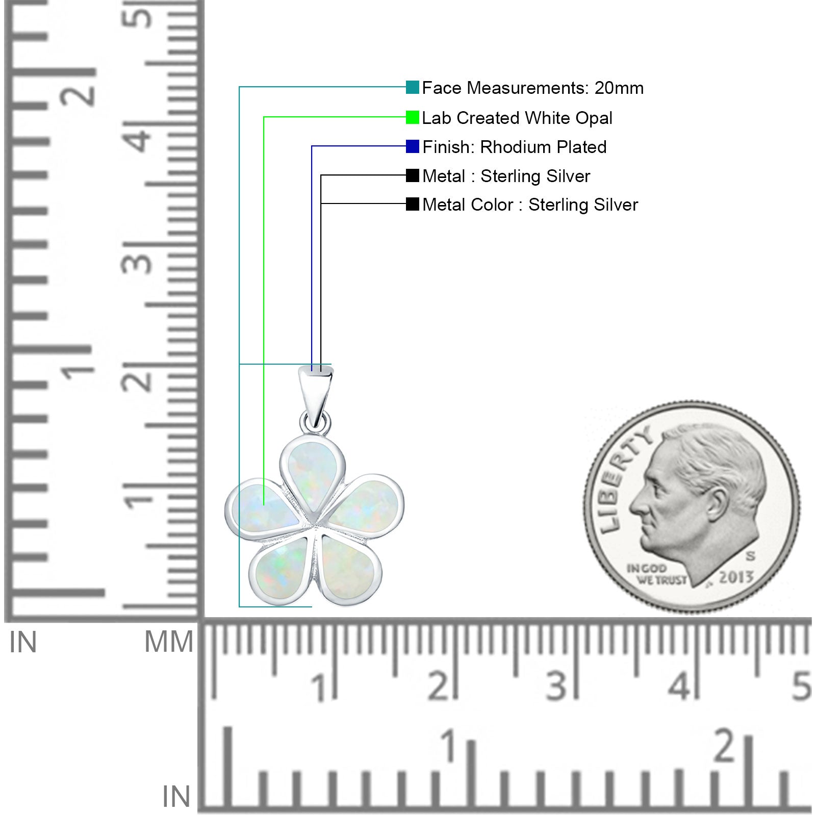 Lab Created White Opal Plumeria Pendant 925 Sterling Silver