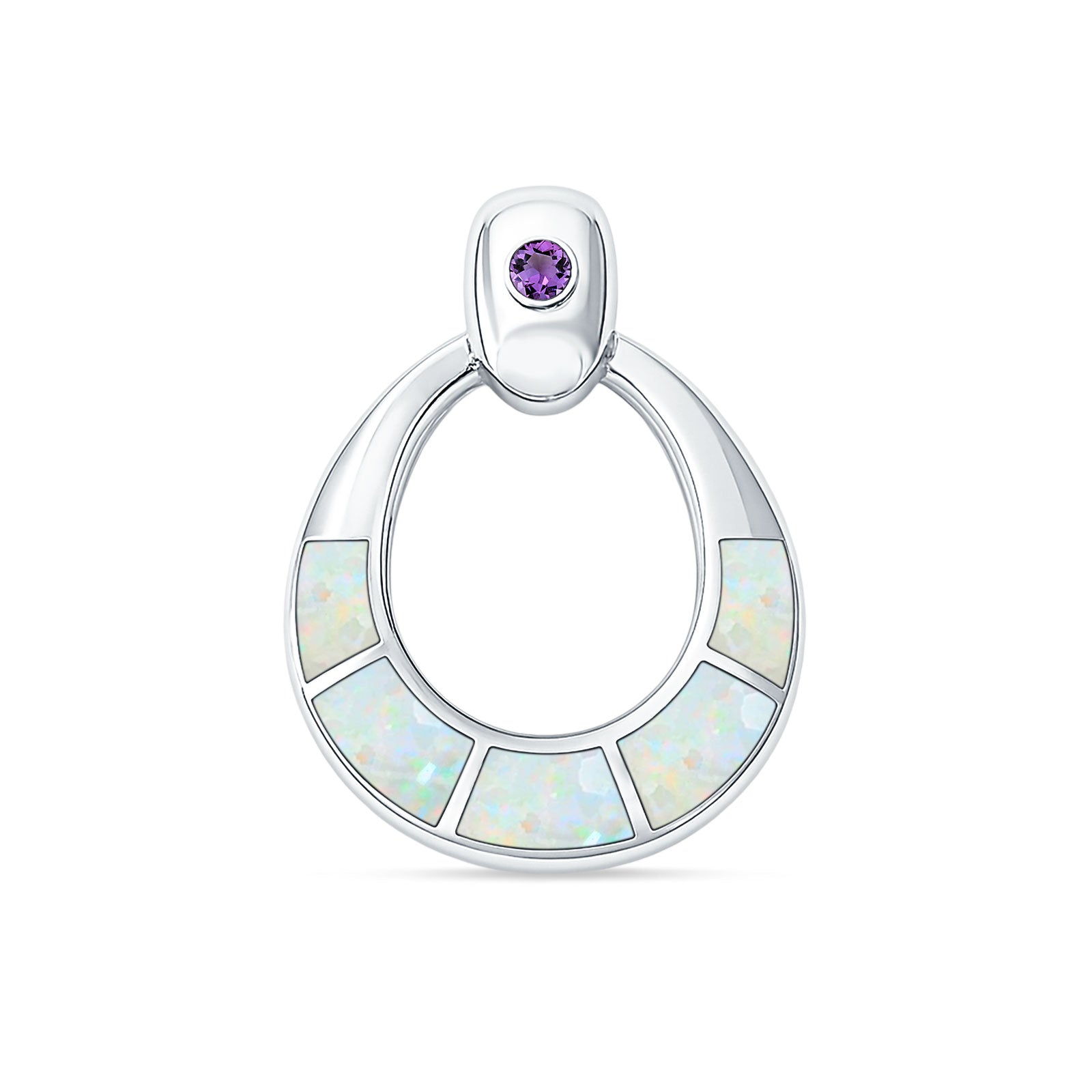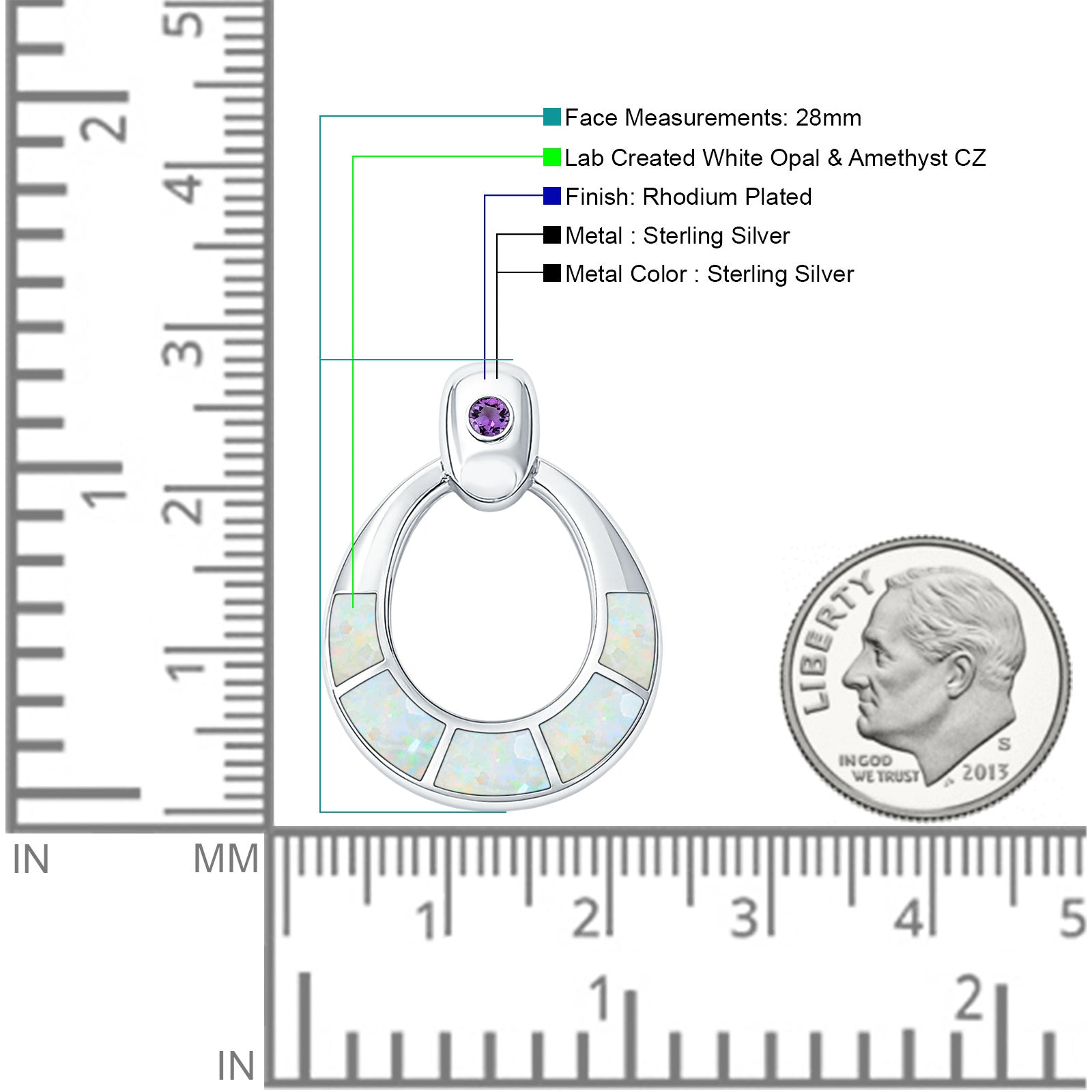 This vintage-style round dangle drop pendant necklace is crafted in solid 925 sterling silver and features a luminous lab created white opal accented with sparkling amethyst cubic zirconia. Measuring 28 mm, it offers elegant movement and soft color play, making it a timeless statement piece and a beautiful gift for her.
