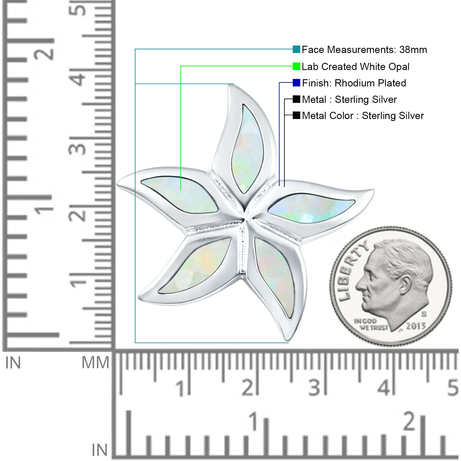 Lab Created White Opal Starfish Pendant 925 Sterling Silver