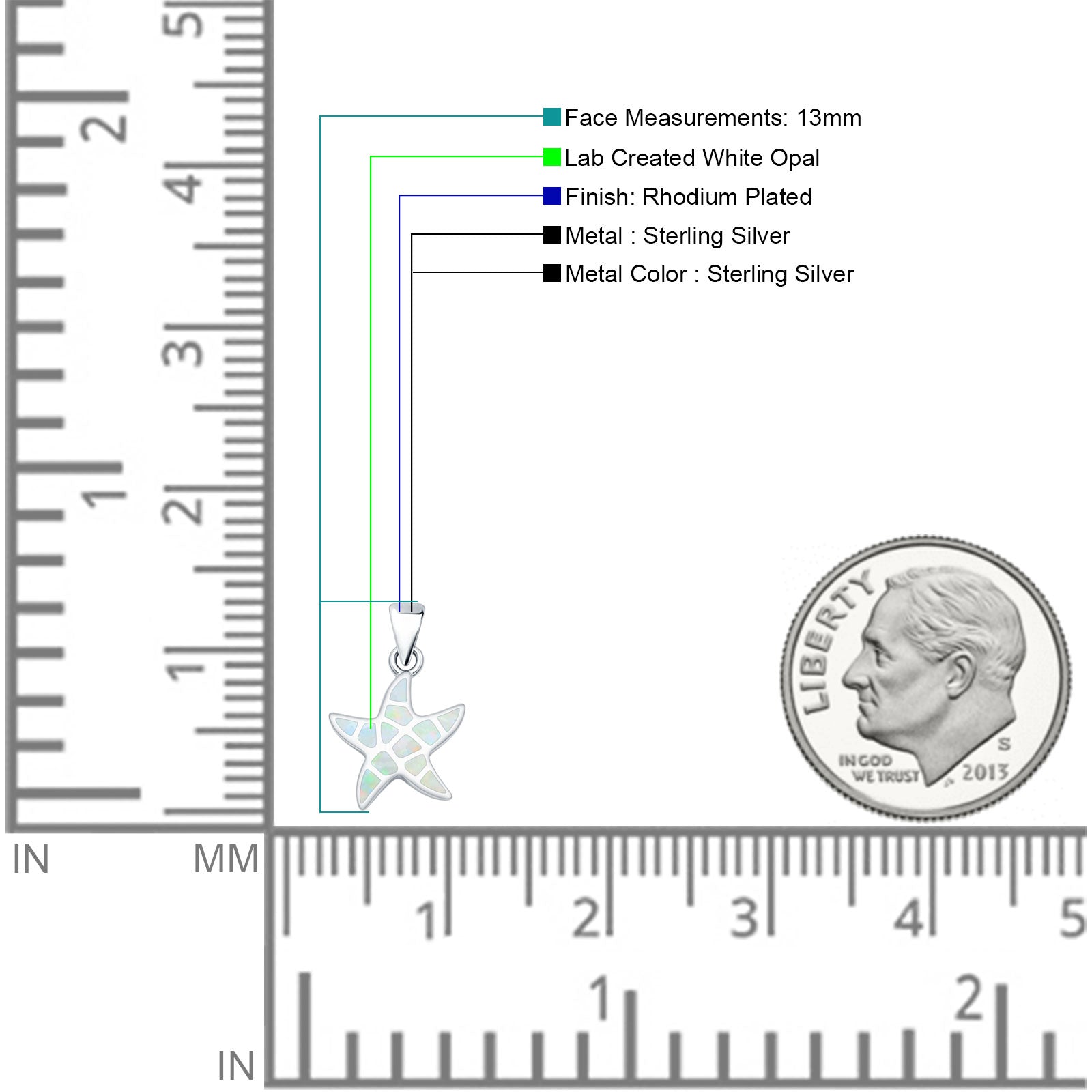 Lab Created White Opal Starfish Pendant 925 Sterling Silver