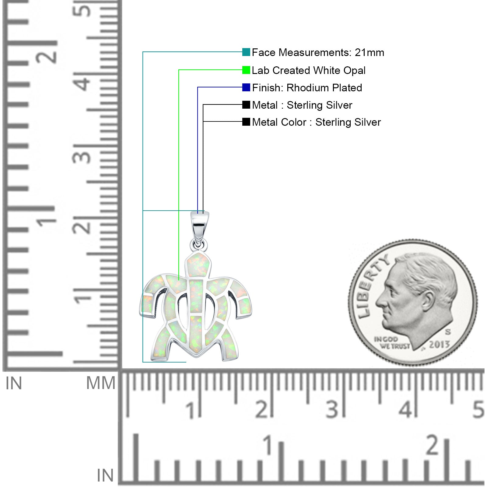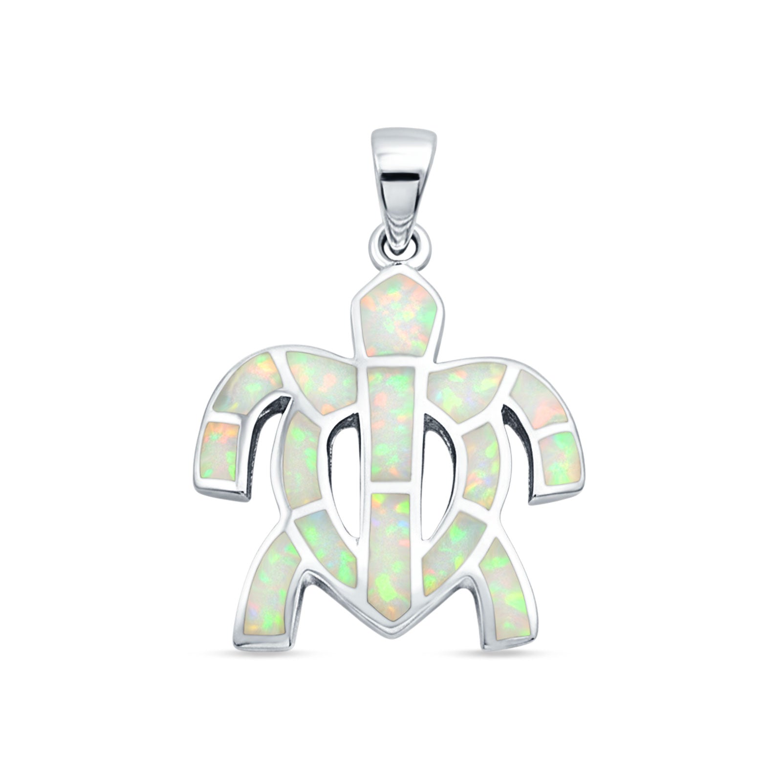 Lab Created White Opal Turtle Pendant 925 Sterling Silver