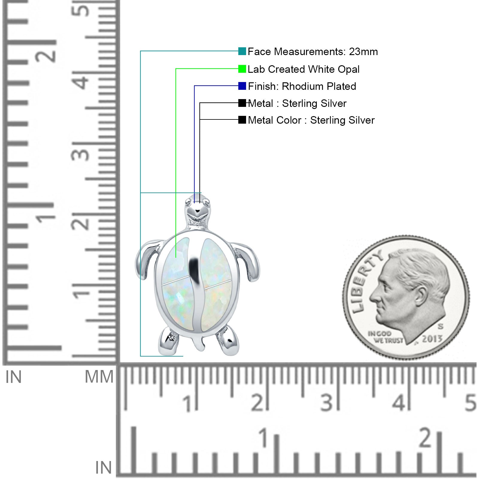 ☉ Style: Lab Created White Opal Turtle Pendant