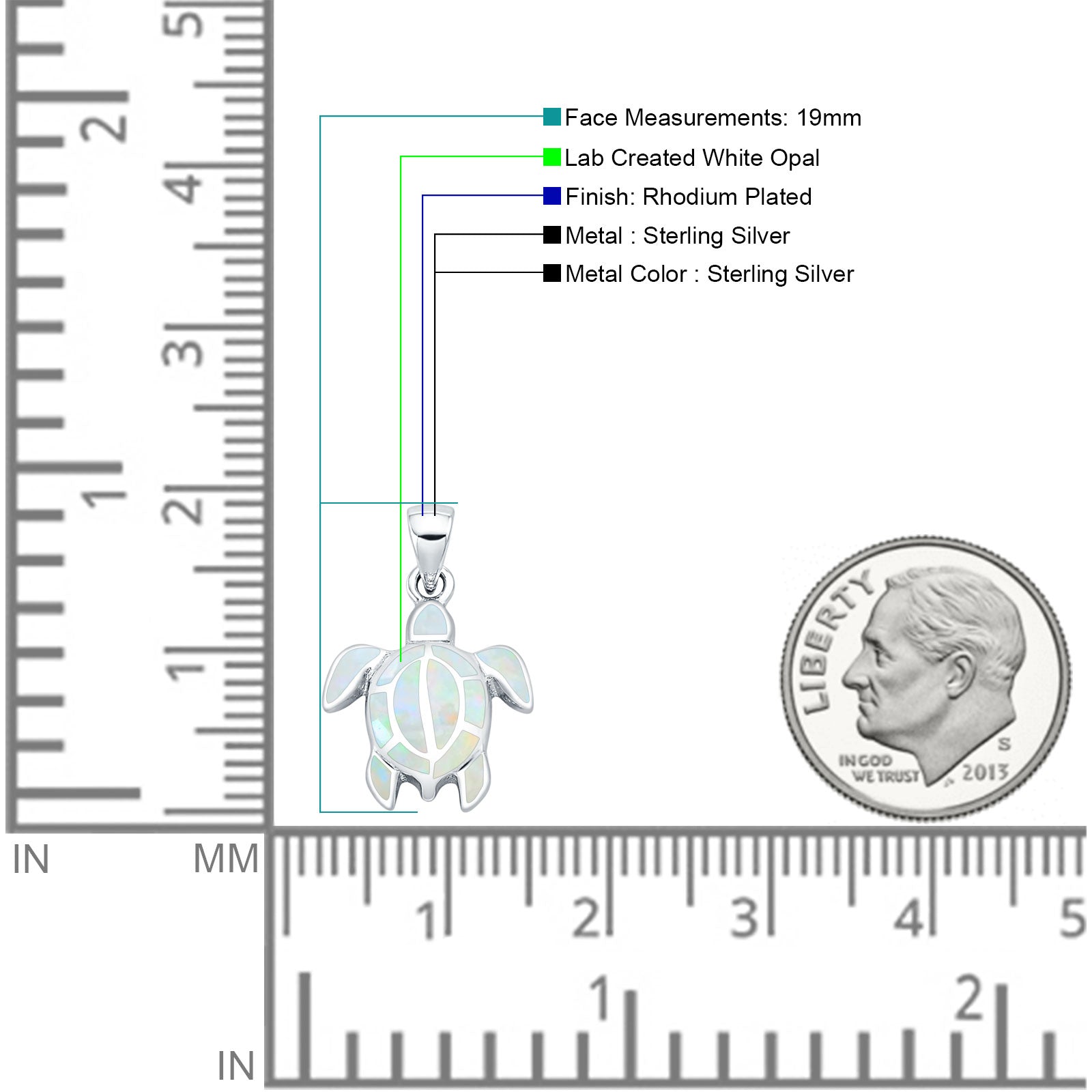 Lab Created White Opal Turtle Pendant 925 Sterling Silver