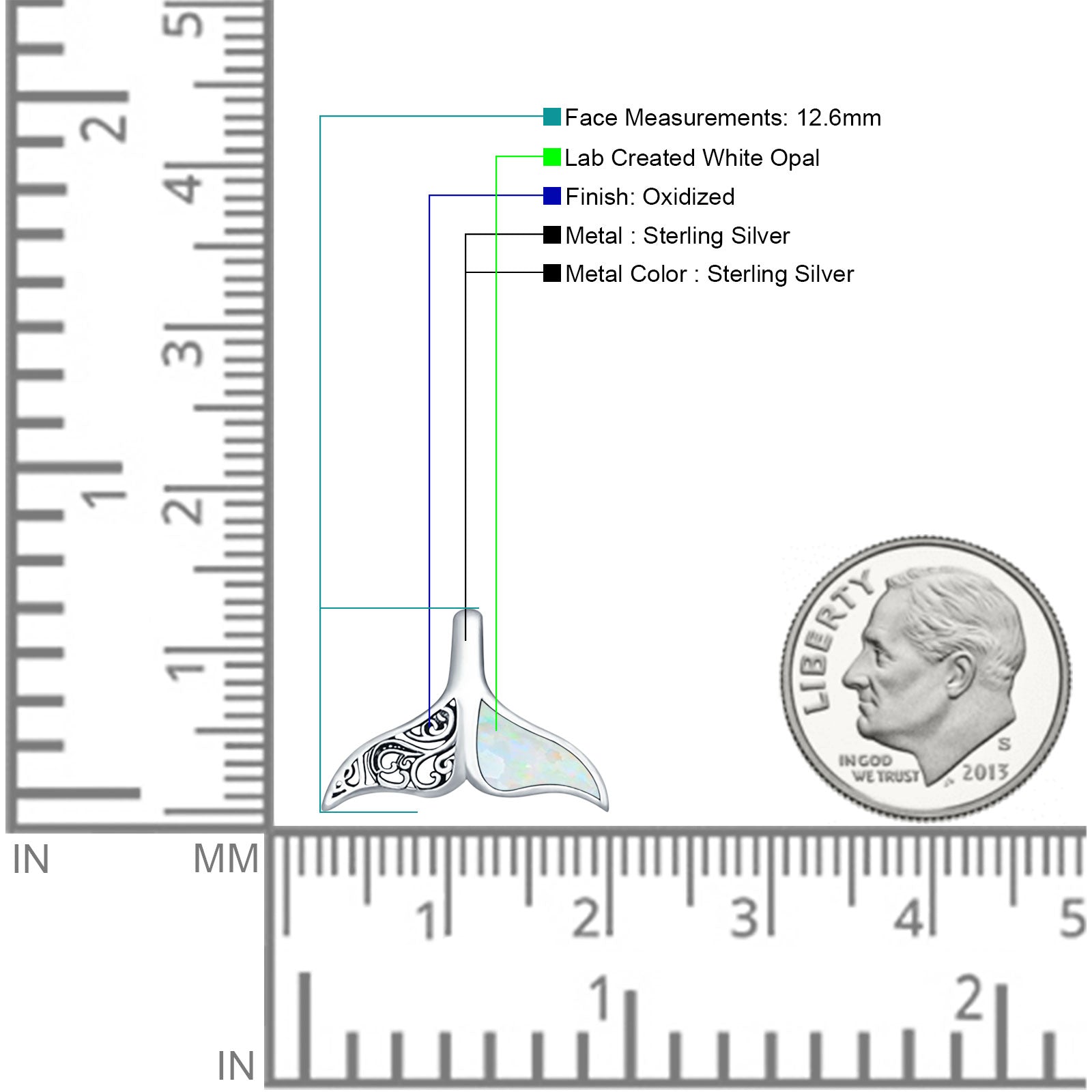 Lab Created White Opal Whale Tail Pendant Oxidized 925 Sterling Silver