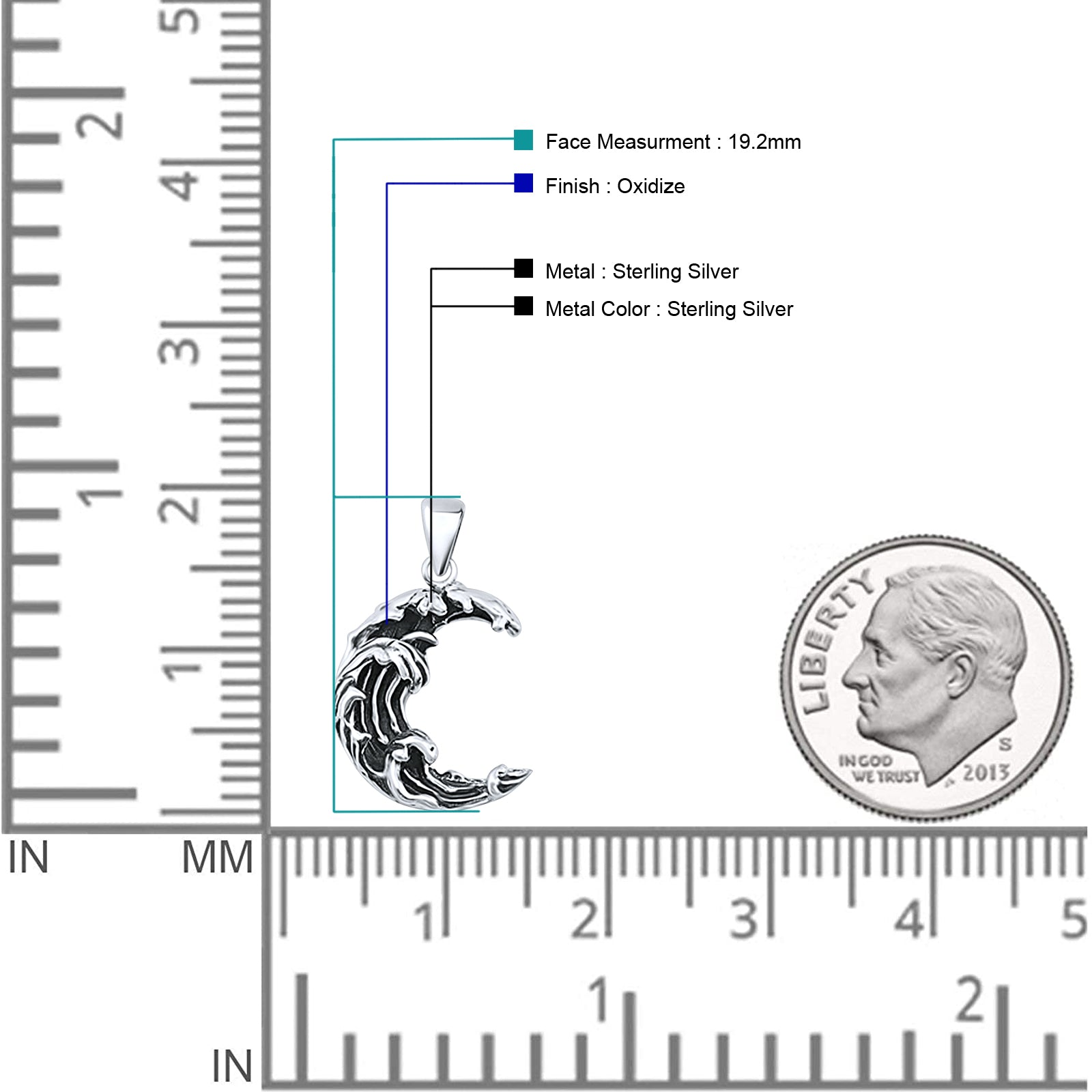 The moon pendant chain necklace features a 19.2mm oxidized 925 sterling silver pendant intricately depicting beautiful balance of the moon and ocean waves. Its vintage-inspired moon and ocean wave design provides evocative pieces with meaning for customers who love nature-themed jewelry. Because of its charm, longevity, and strong retail appeal, this pendant is perfect for both consumers looking for everyday wear and gifting as well as wholesale buyers for jewelry shops and boutique collections.