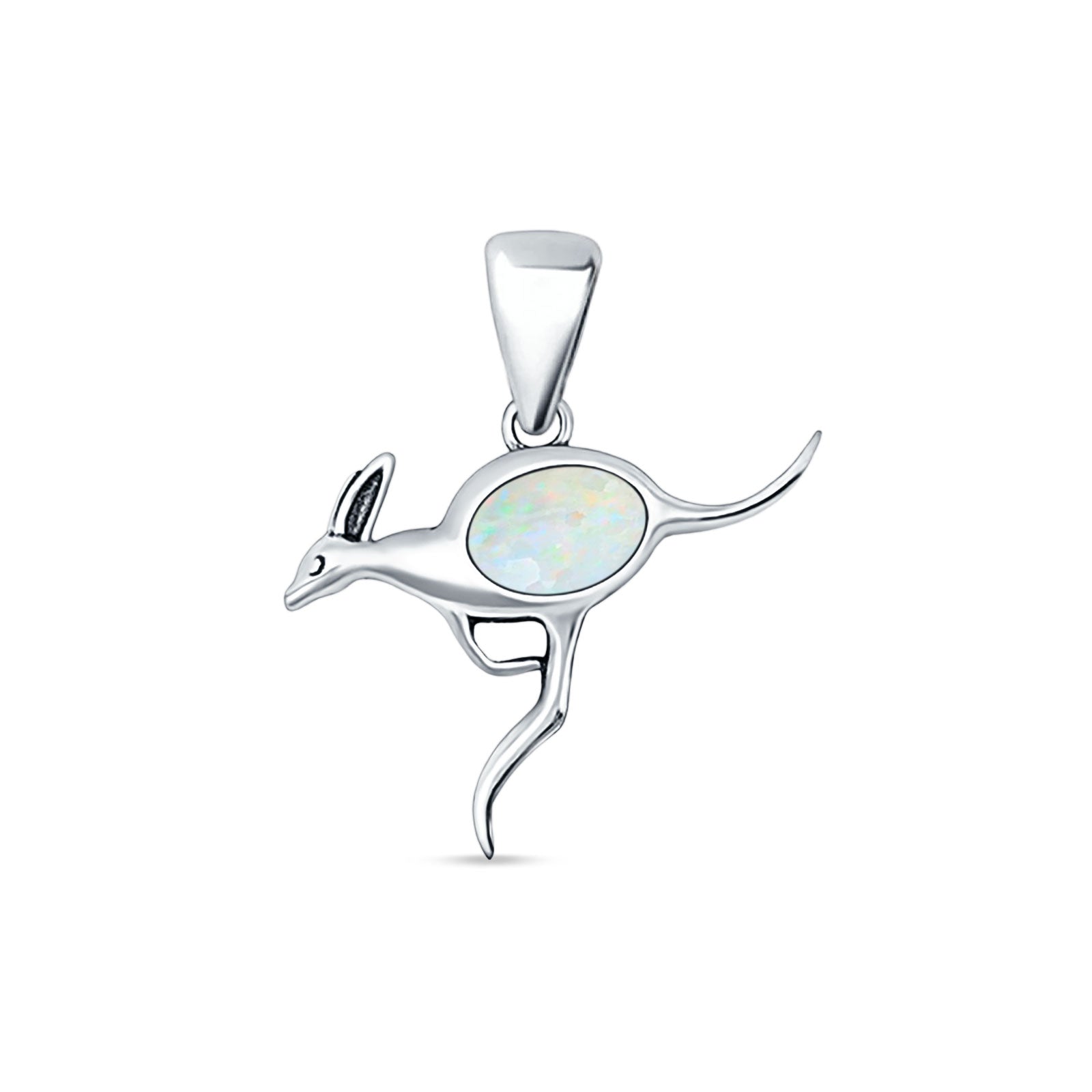 ☉ Style: Lab Created White Opal Kangaroo Pendant