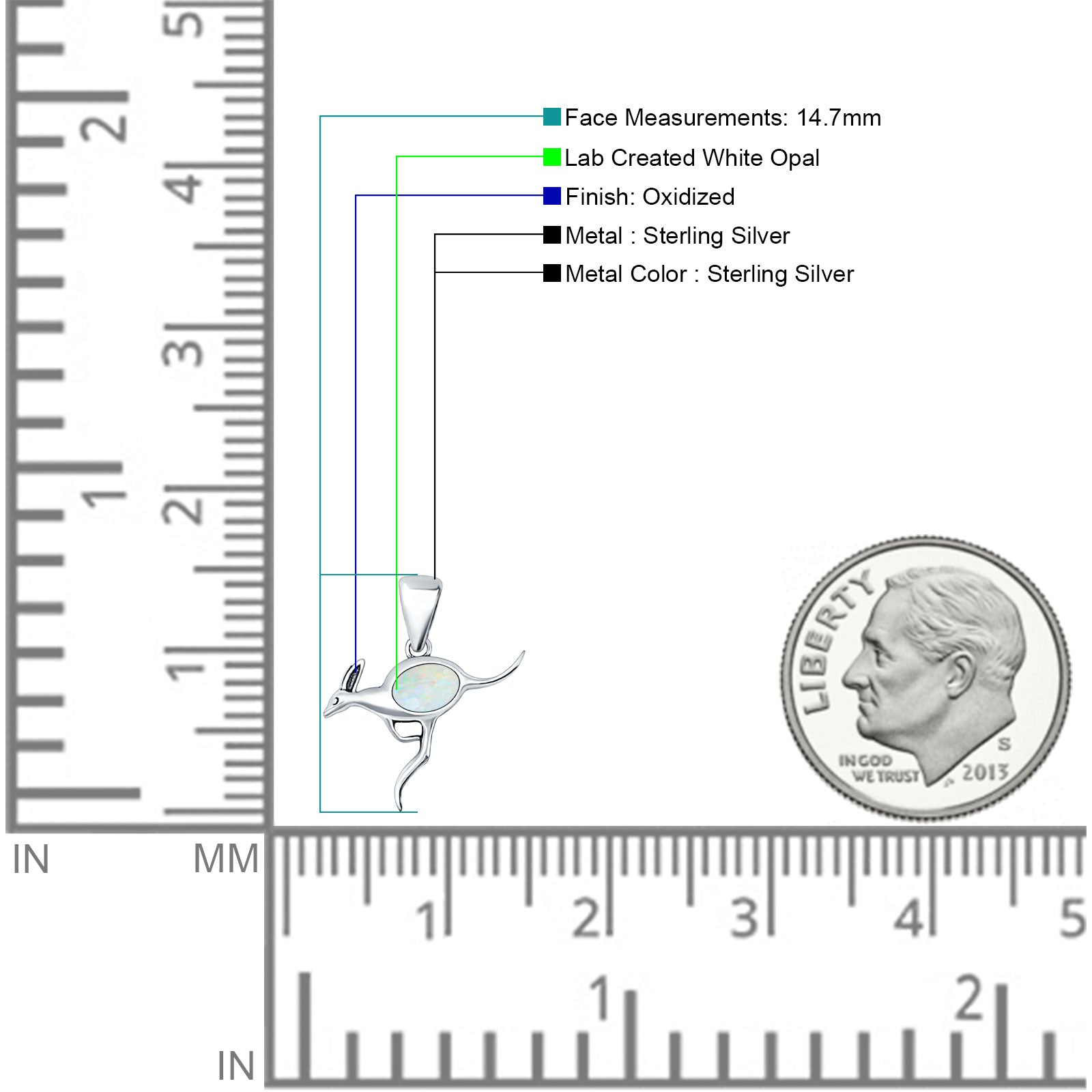 Oval Lab Created White Opal Kangaroo Pendant Oxidized 925 Sterling Silver