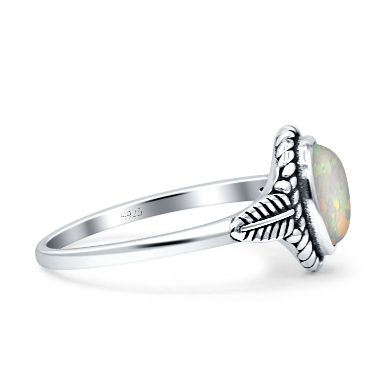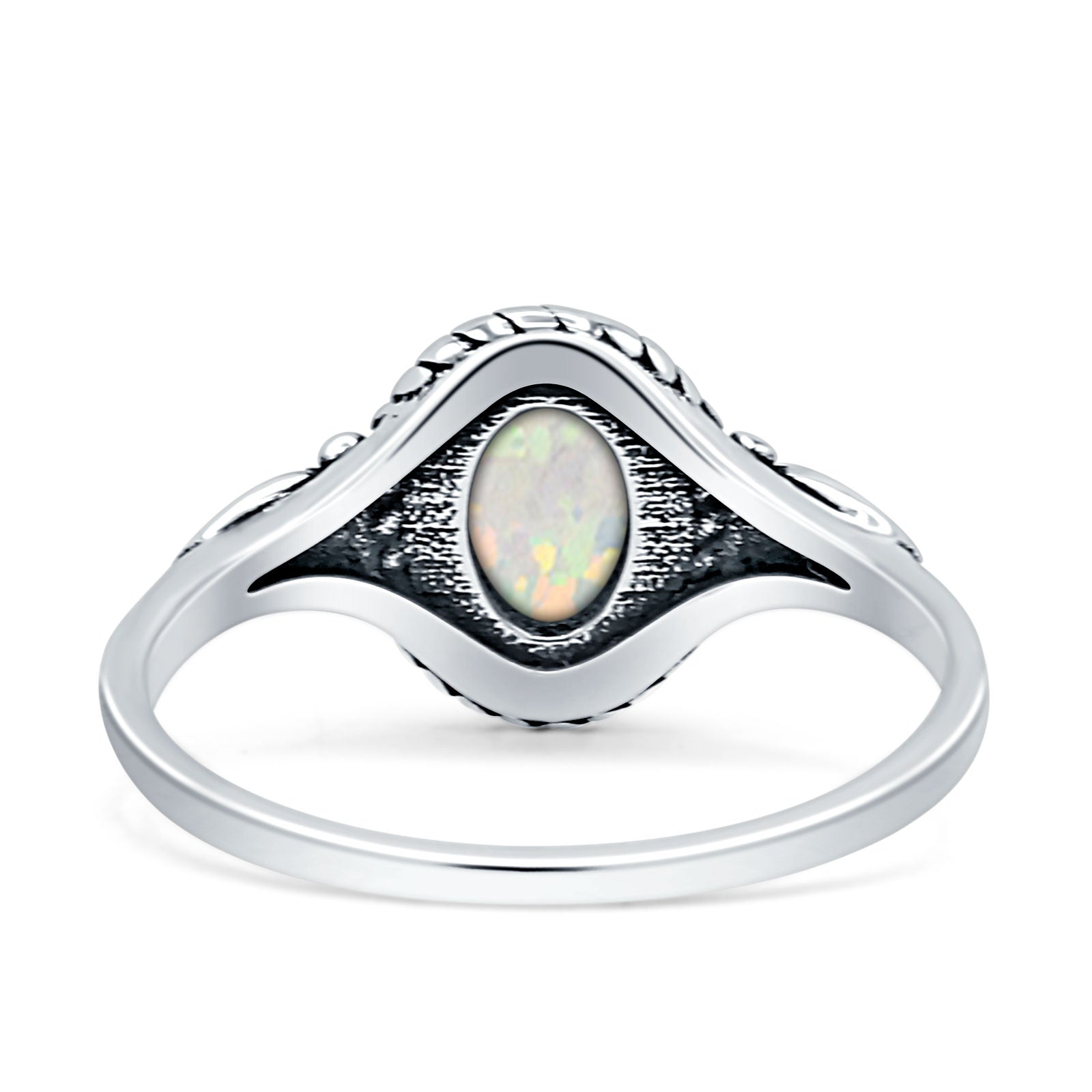Oval Lab Created White Opal Twisted Rope Leaf Ring Oxidized 925 Sterling Silver Wholesale