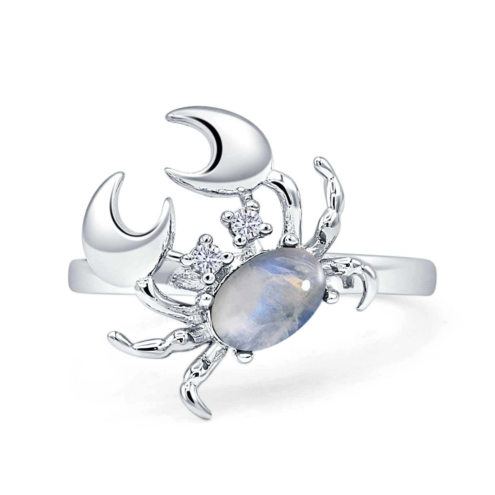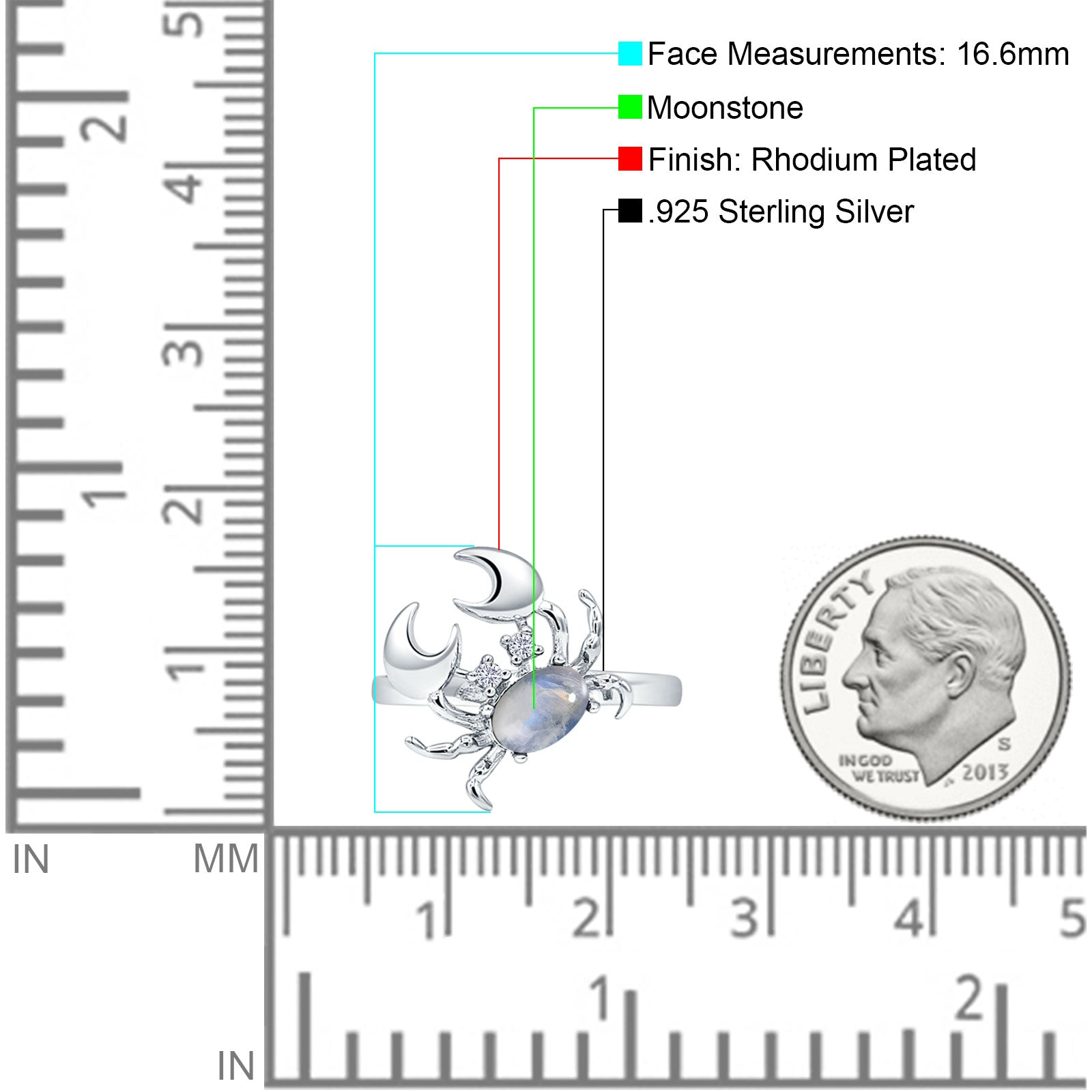 Oval Moonstone & CZ Crab Ring 925 Sterling Silver Wholesale