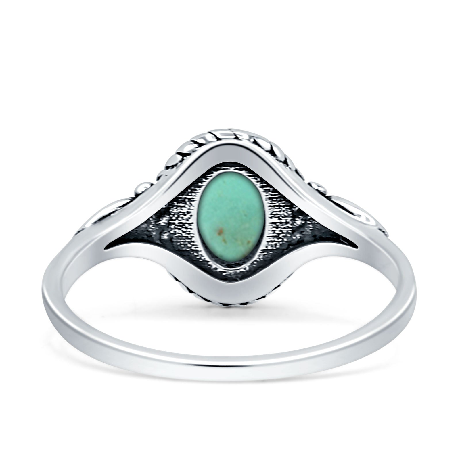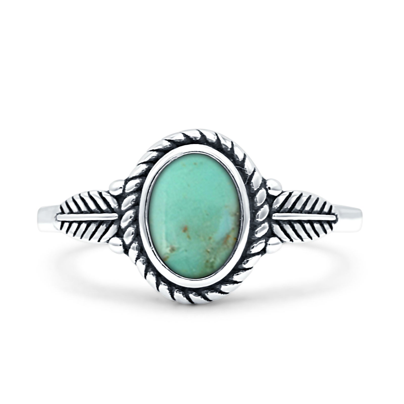 Oval Turquoise Twisted Rope Leaf Ring Oxidized 925 Sterling Silver Wholesale