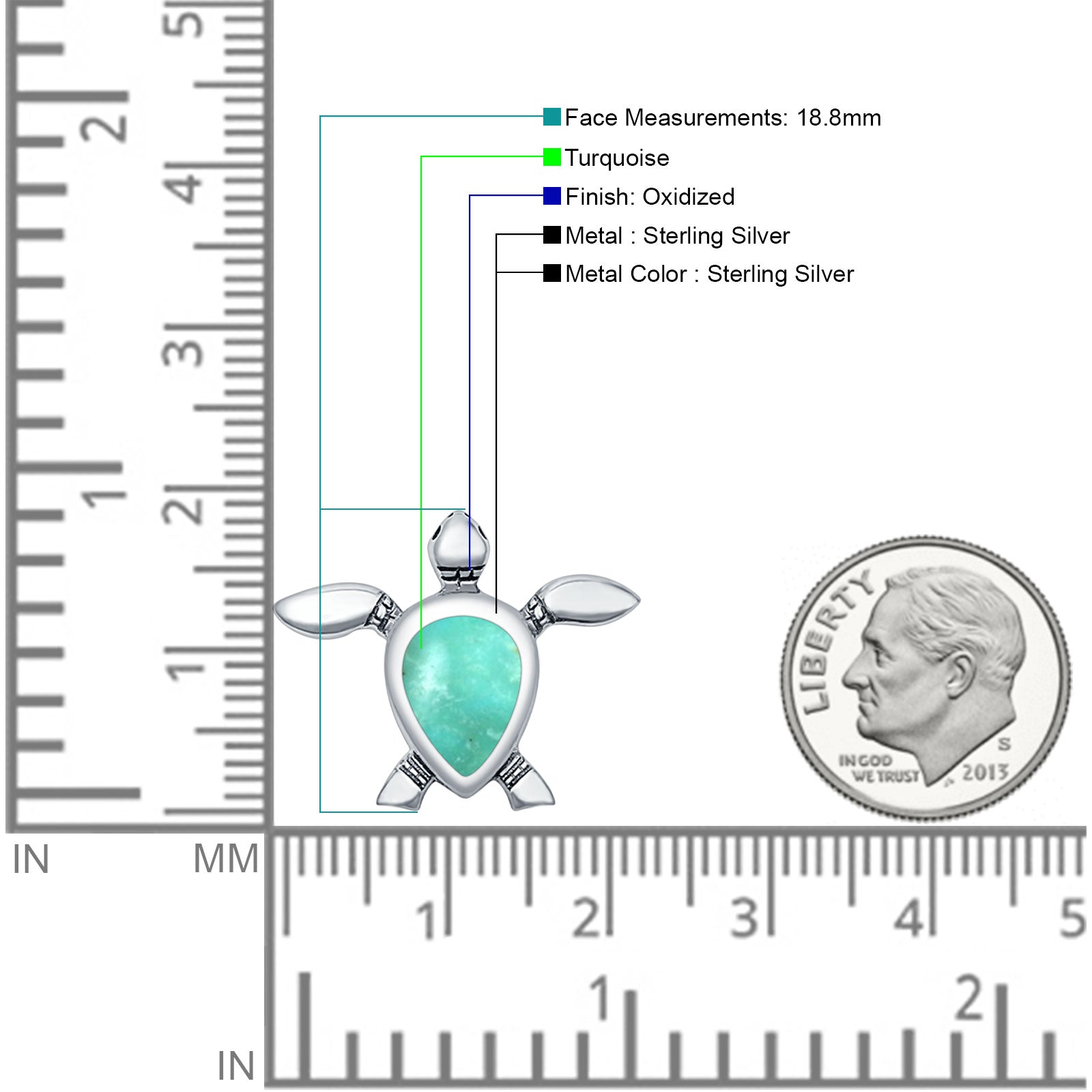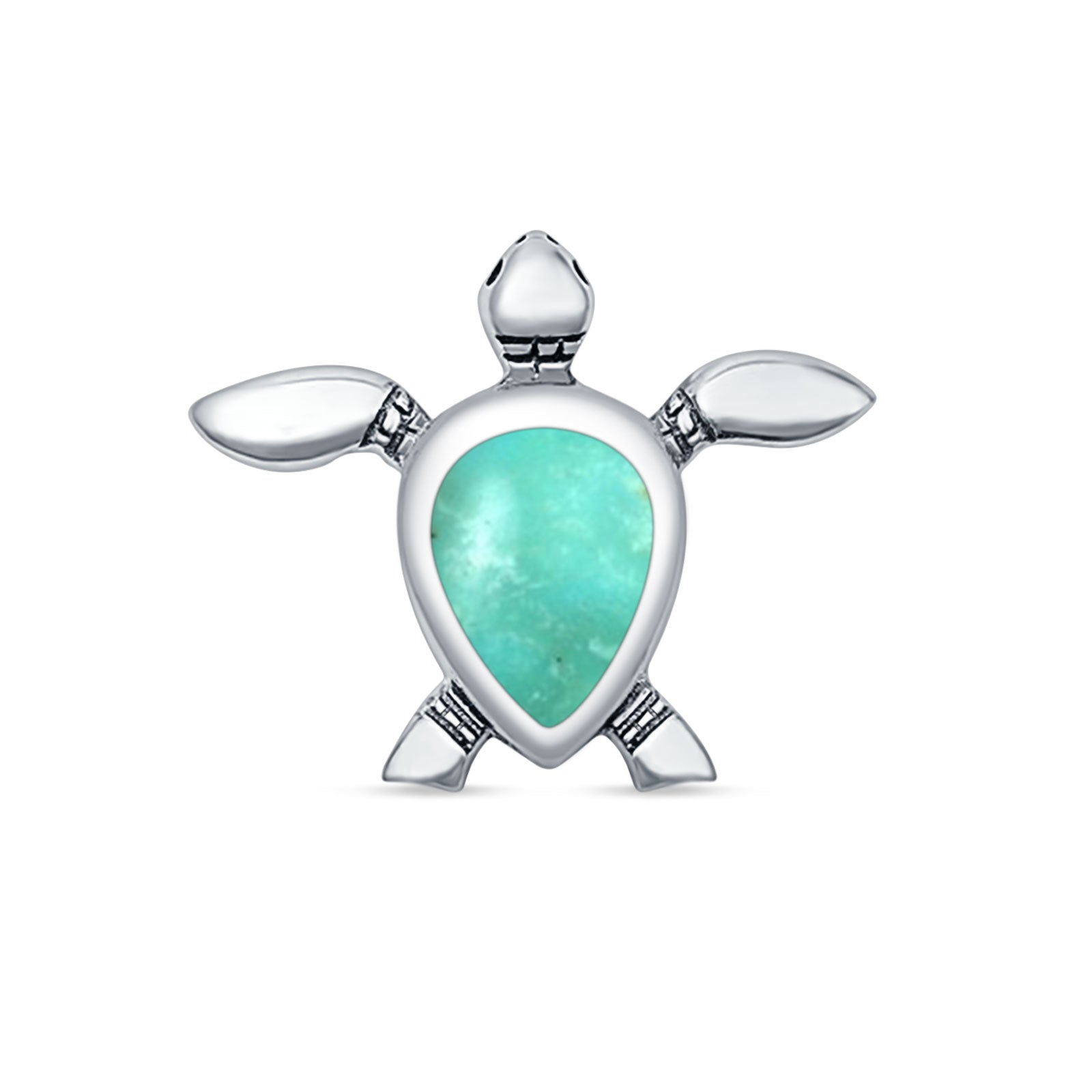 Pear Turquoise Turtle Pendant Oxidized 925 Sterling Silver