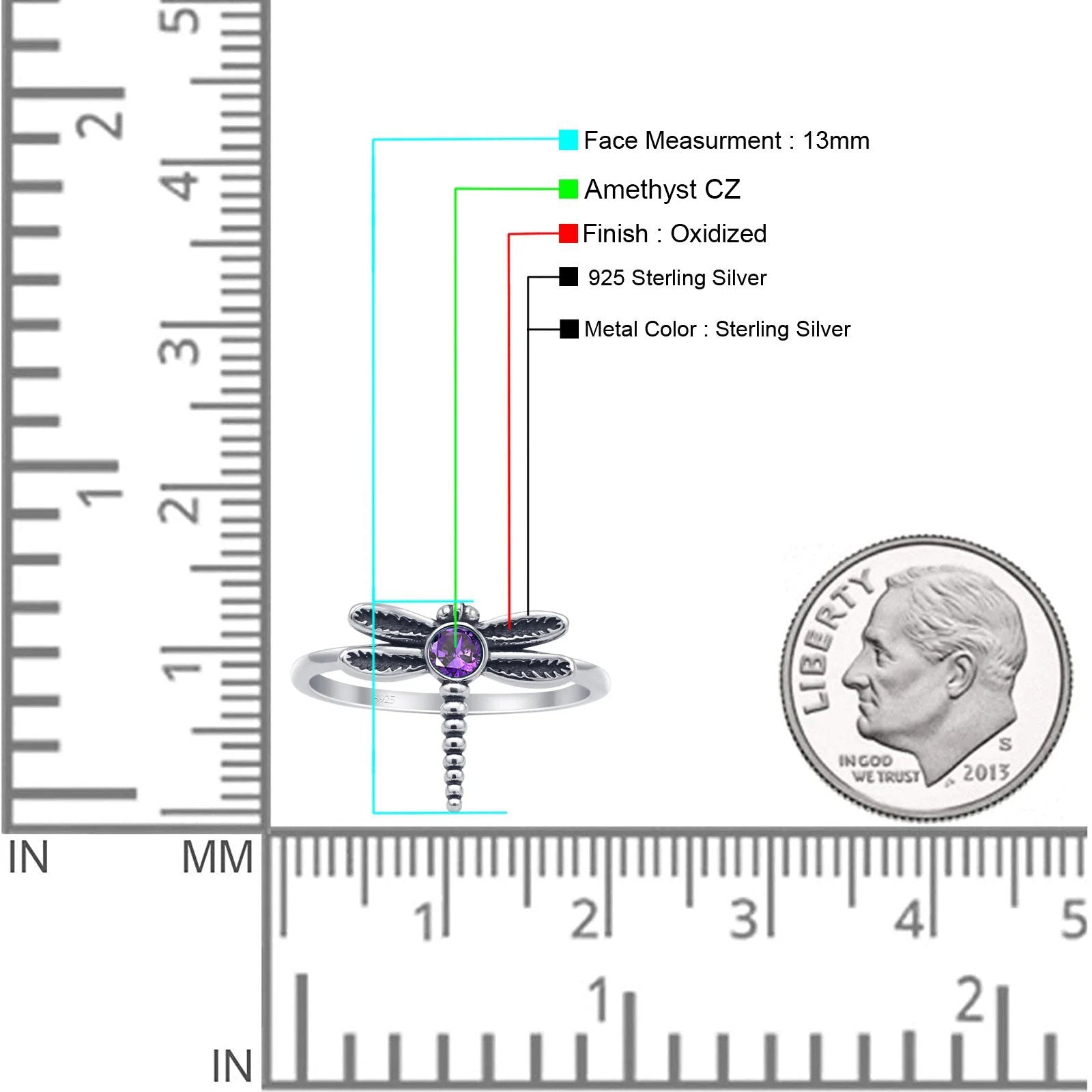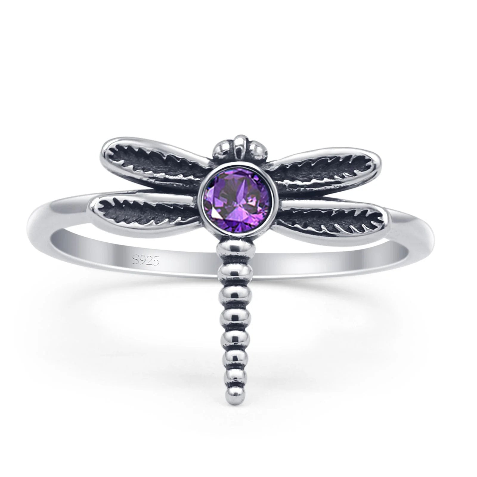 Round Amethyst CZ Dragonfly Ring Oxidized 925 Sterling Silver Wholesale