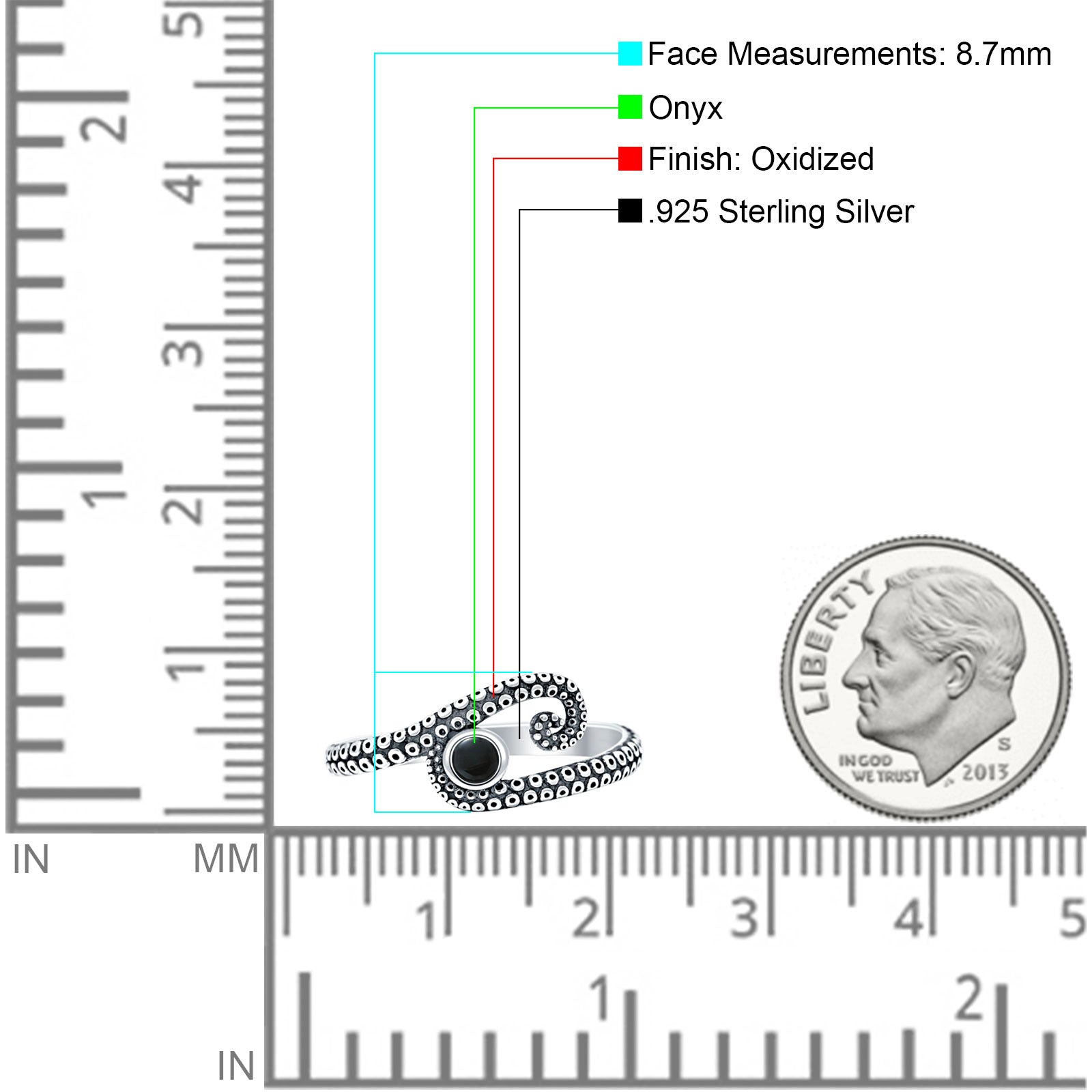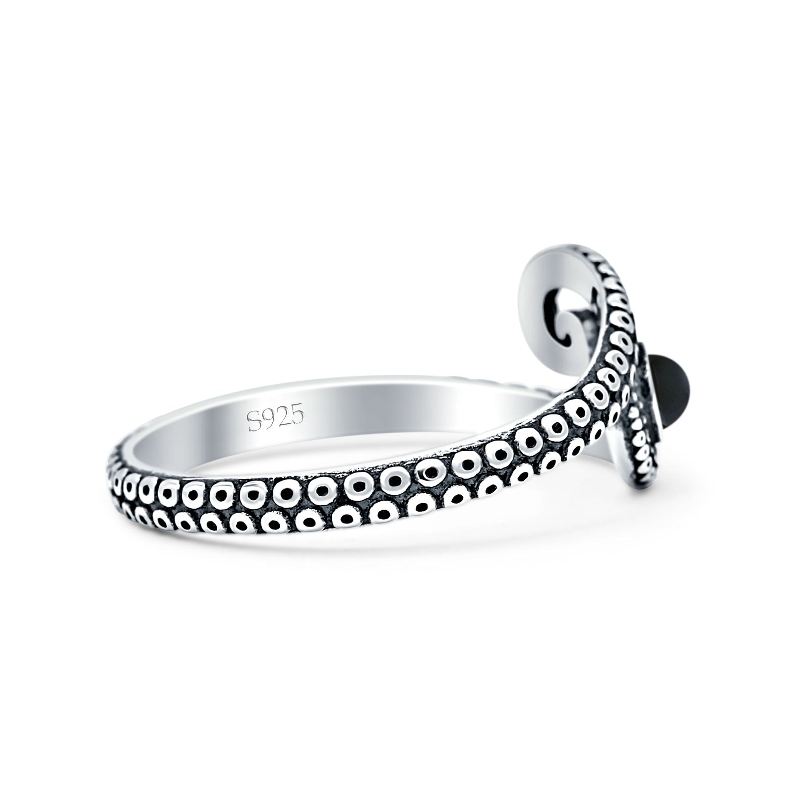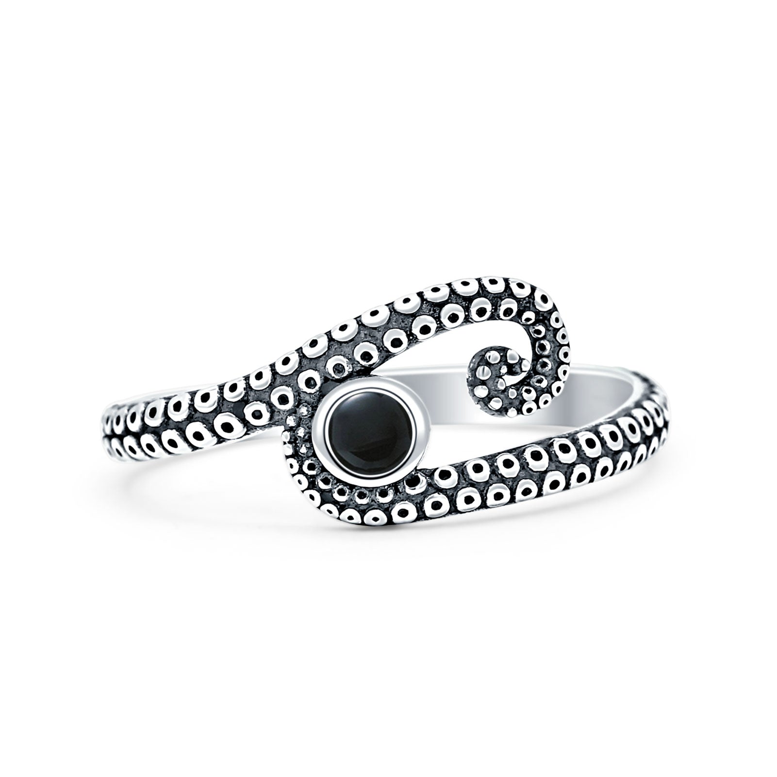 Round Black Onyx Octopus Tentacle Ring Oxidized 925 Sterling Silver Wholesale