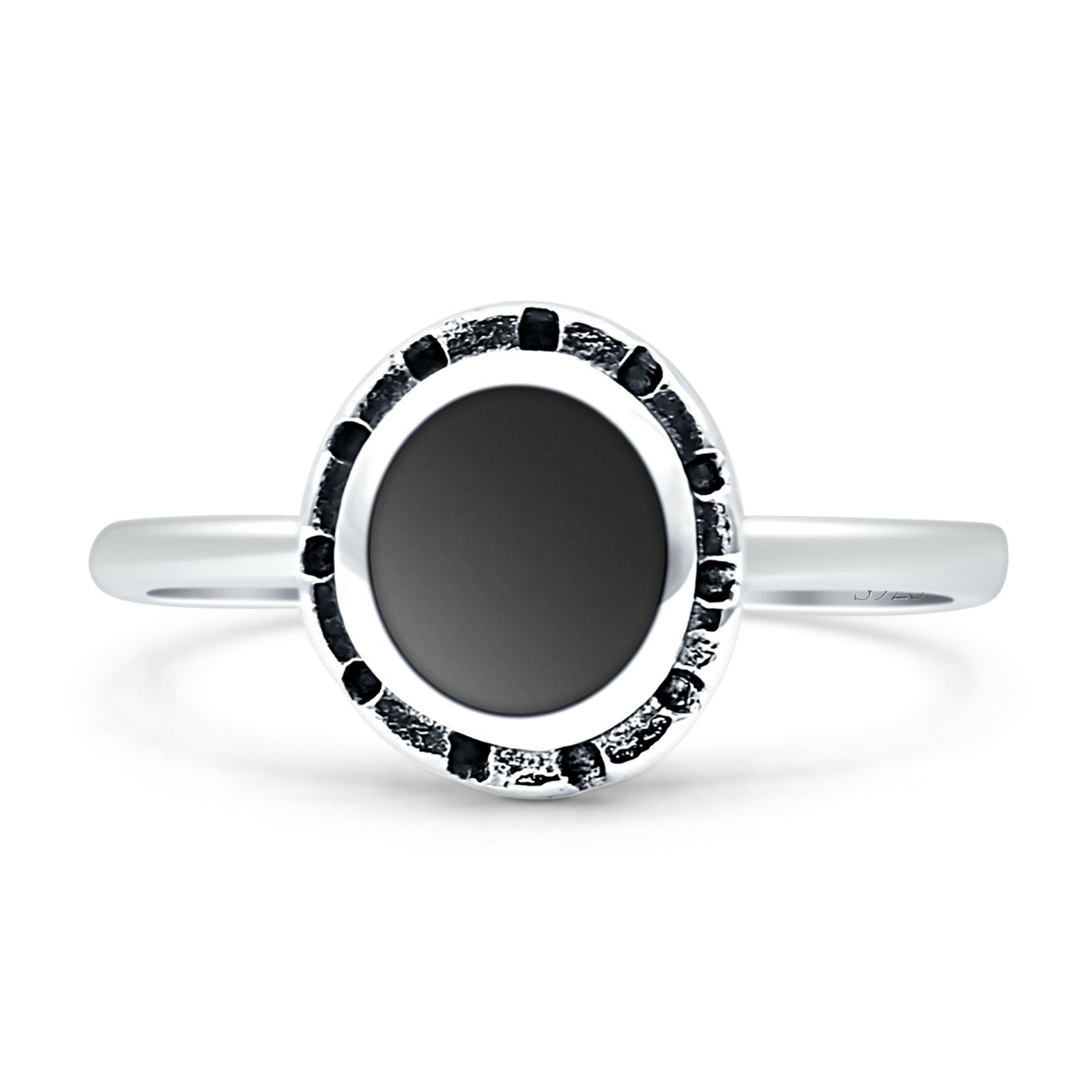 Round Black Onyx Solitaire Ring Oxidized 925 Sterling Silver Wholesale