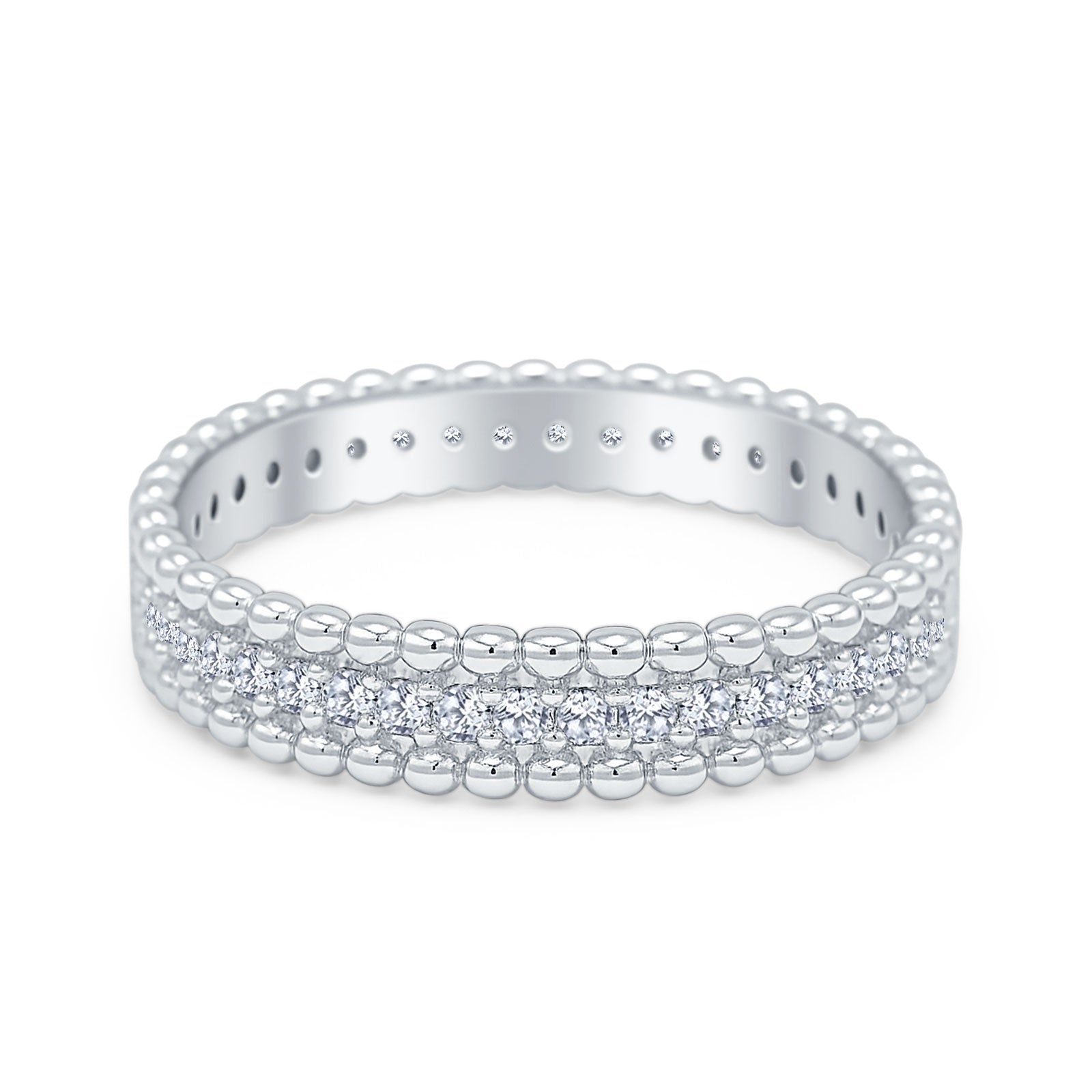 Round Cubic Zirconia Beaded Band 925 Sterling Silver Wholesale