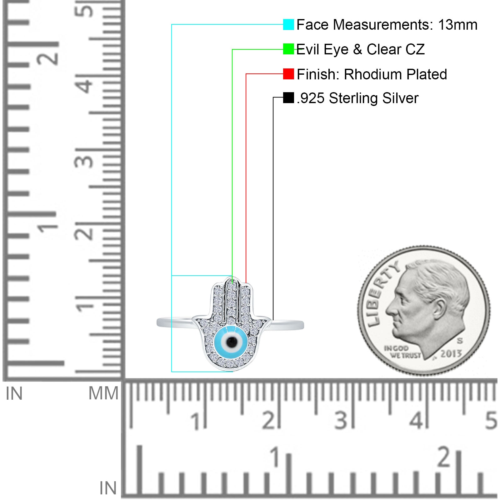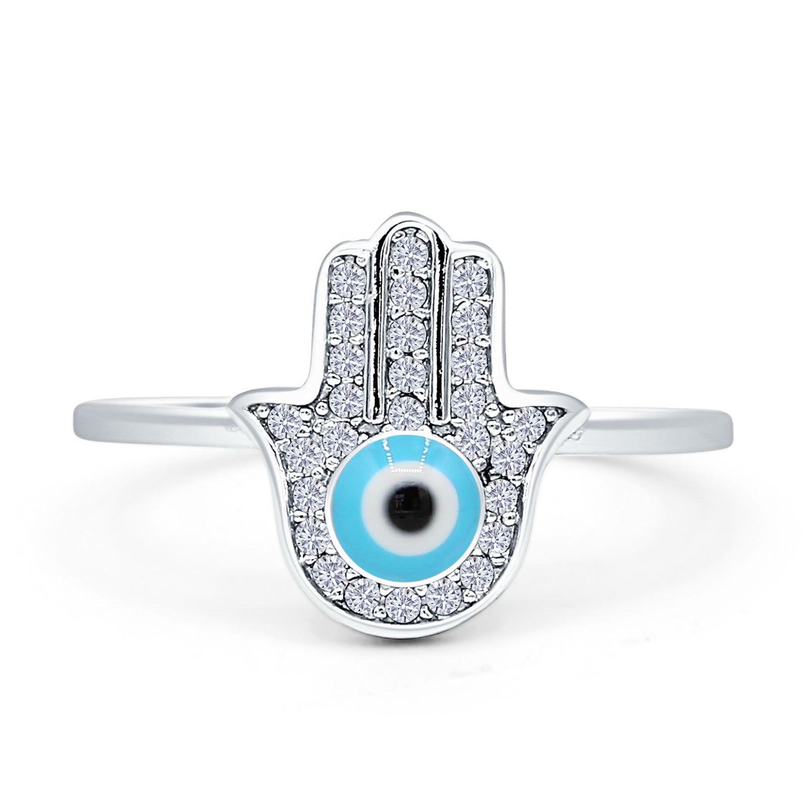 Round Cubic Zirconia Hand Of Hamsa & Evil Eye Ring 925 Sterling Silver Wholesale