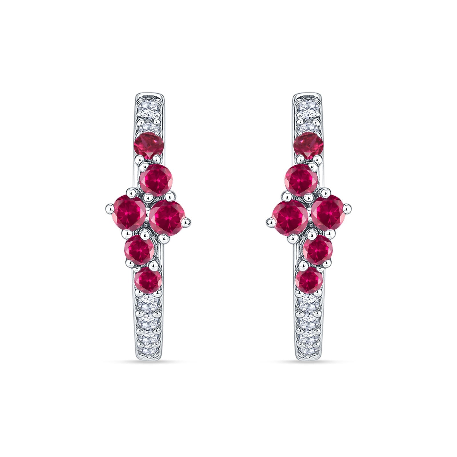 Round CZ & Ruby CZ Huggie Hoop Earrings 925 Sterling Silver Wholesale