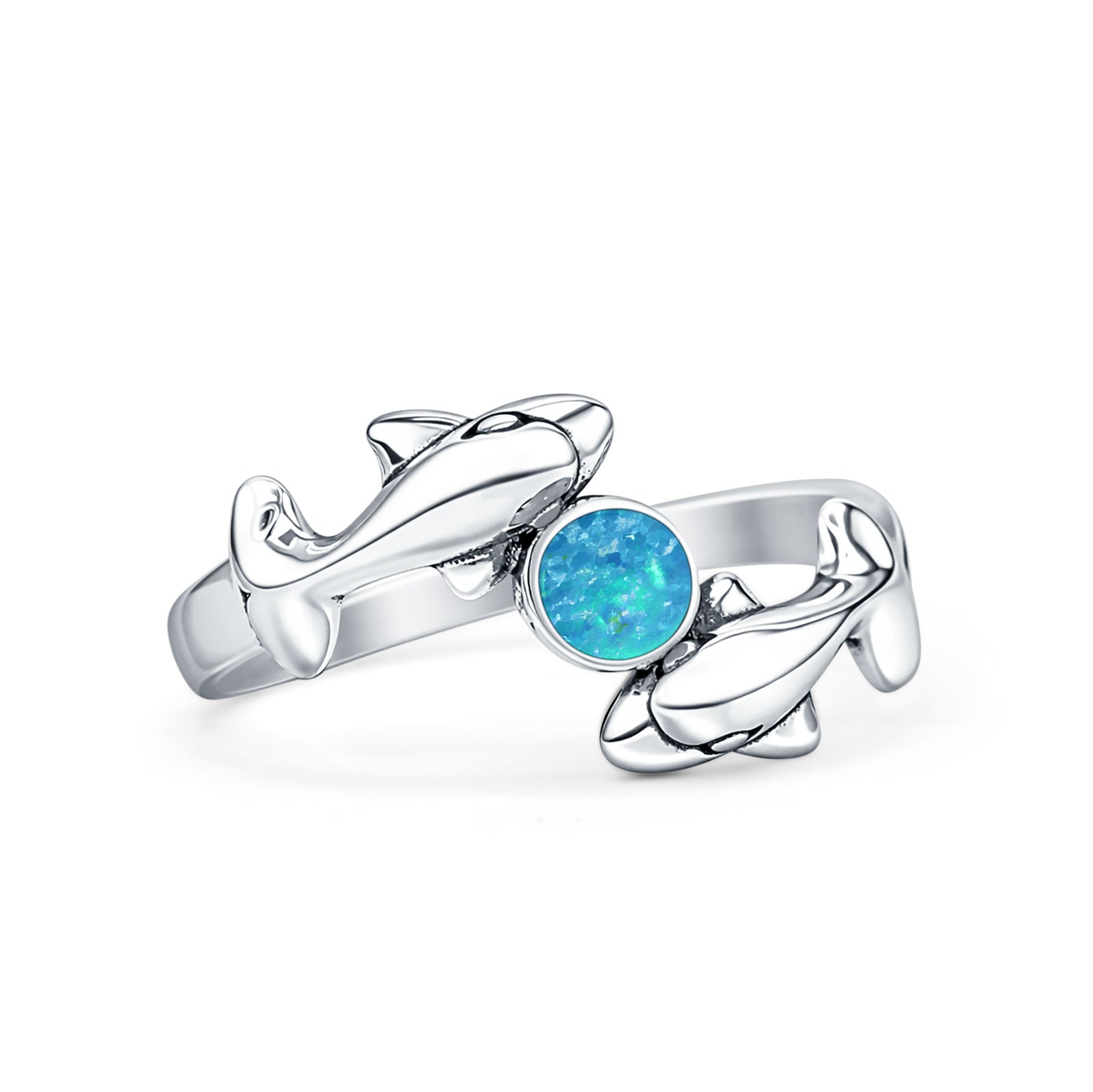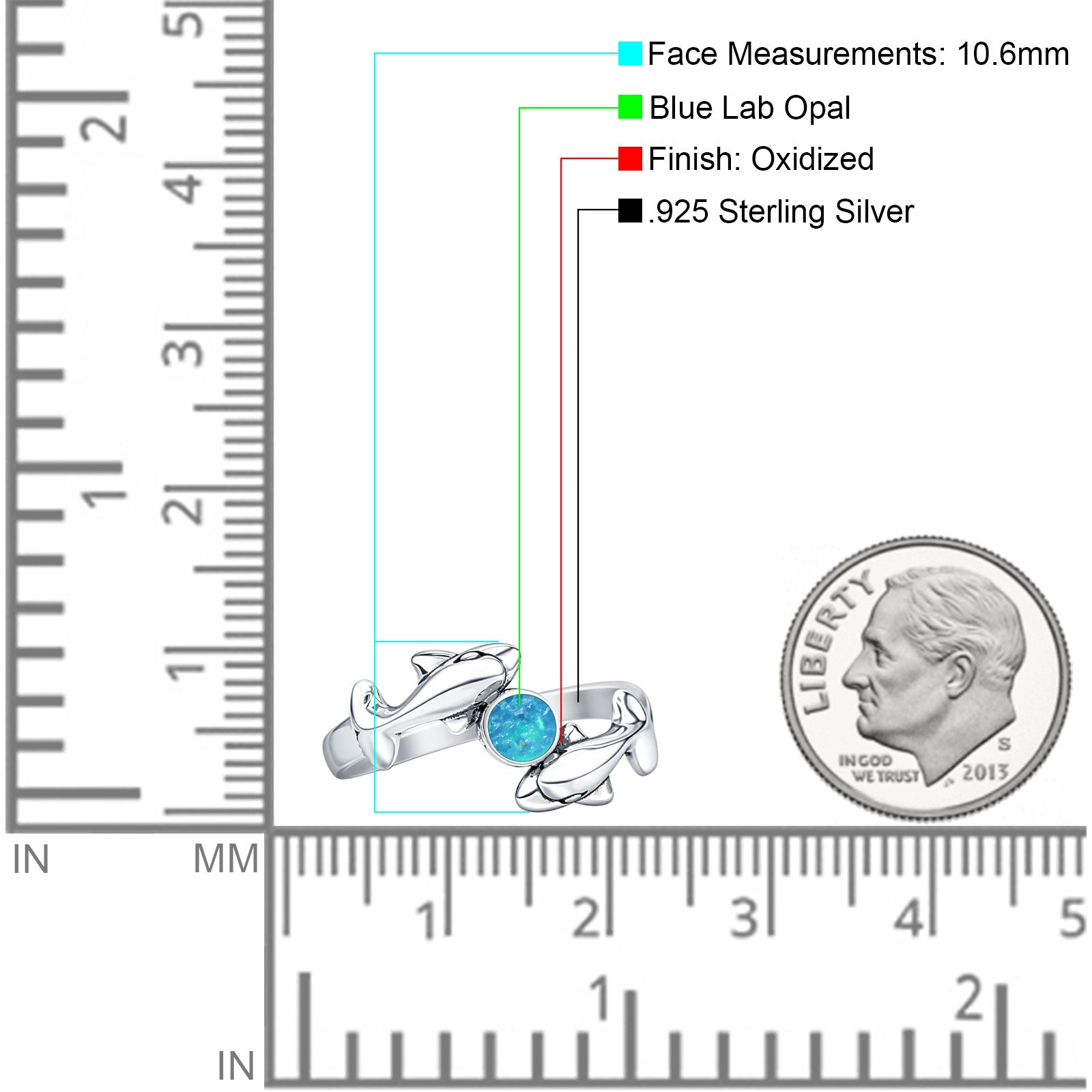 Round Lab Created Blue Opal Dolphin Ring Oxidized 925 Sterling Silver Wholesale