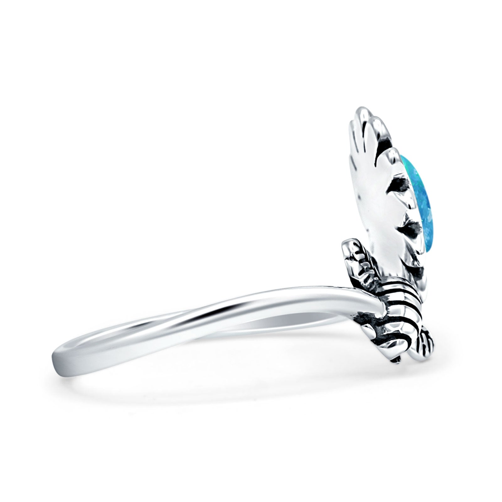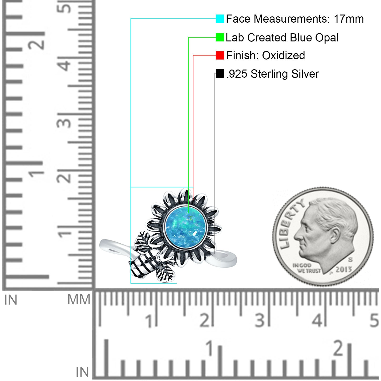 Round Lab Created Blue Opal Flower & Bee Ring Oxidized 925 Sterling Silver Wholesale