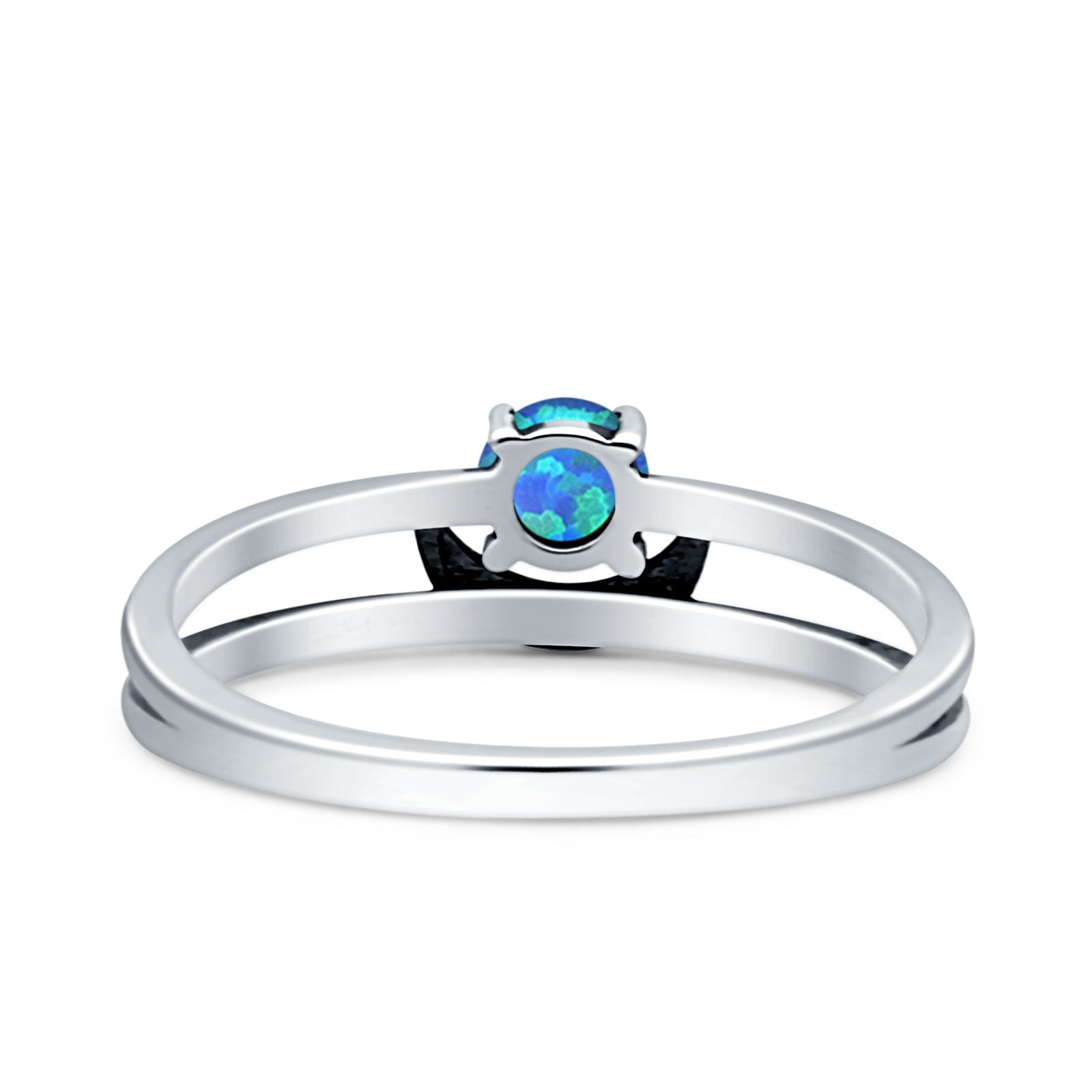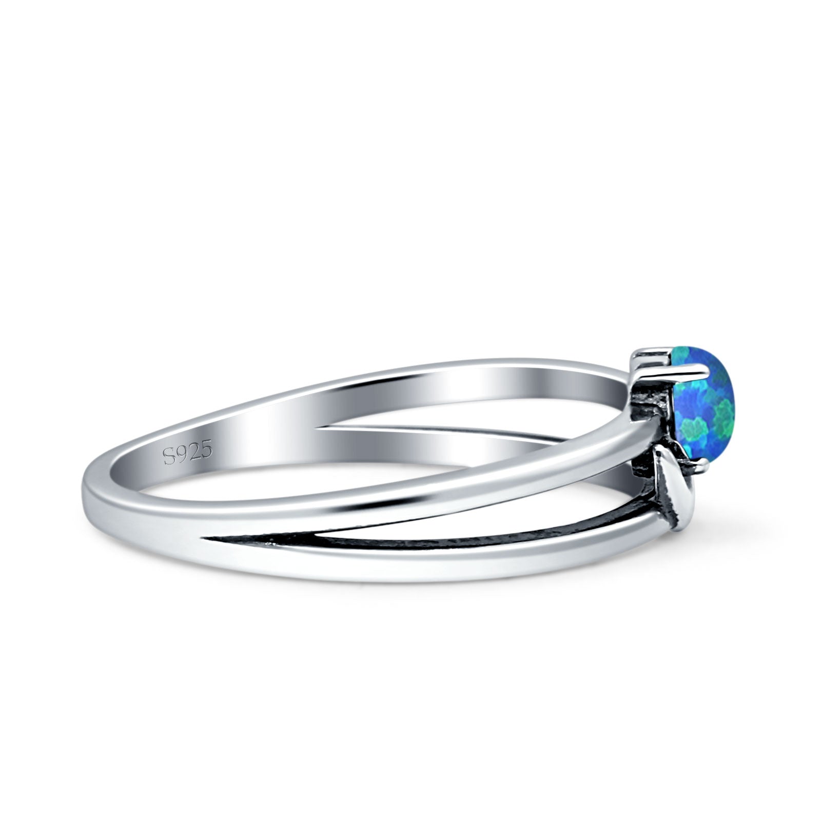 Round Lab Created Blue Opal Moon Ring Oxidized 925 Sterling Silver Wholesale