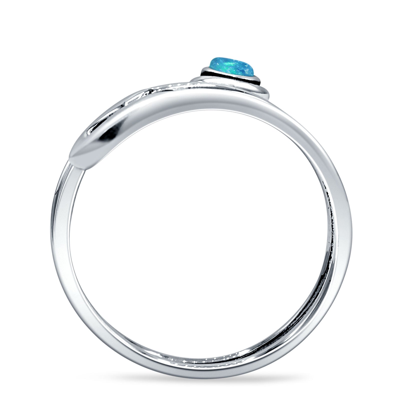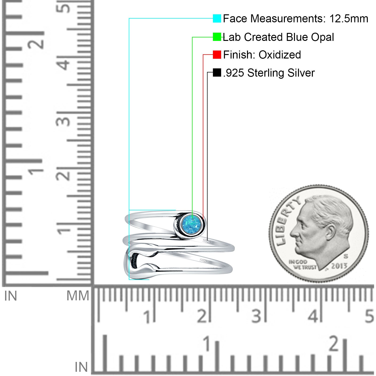 Round Lab Created Blue Opal Safety Pin Ring Oxidized 925 Sterling Silver Wholesale