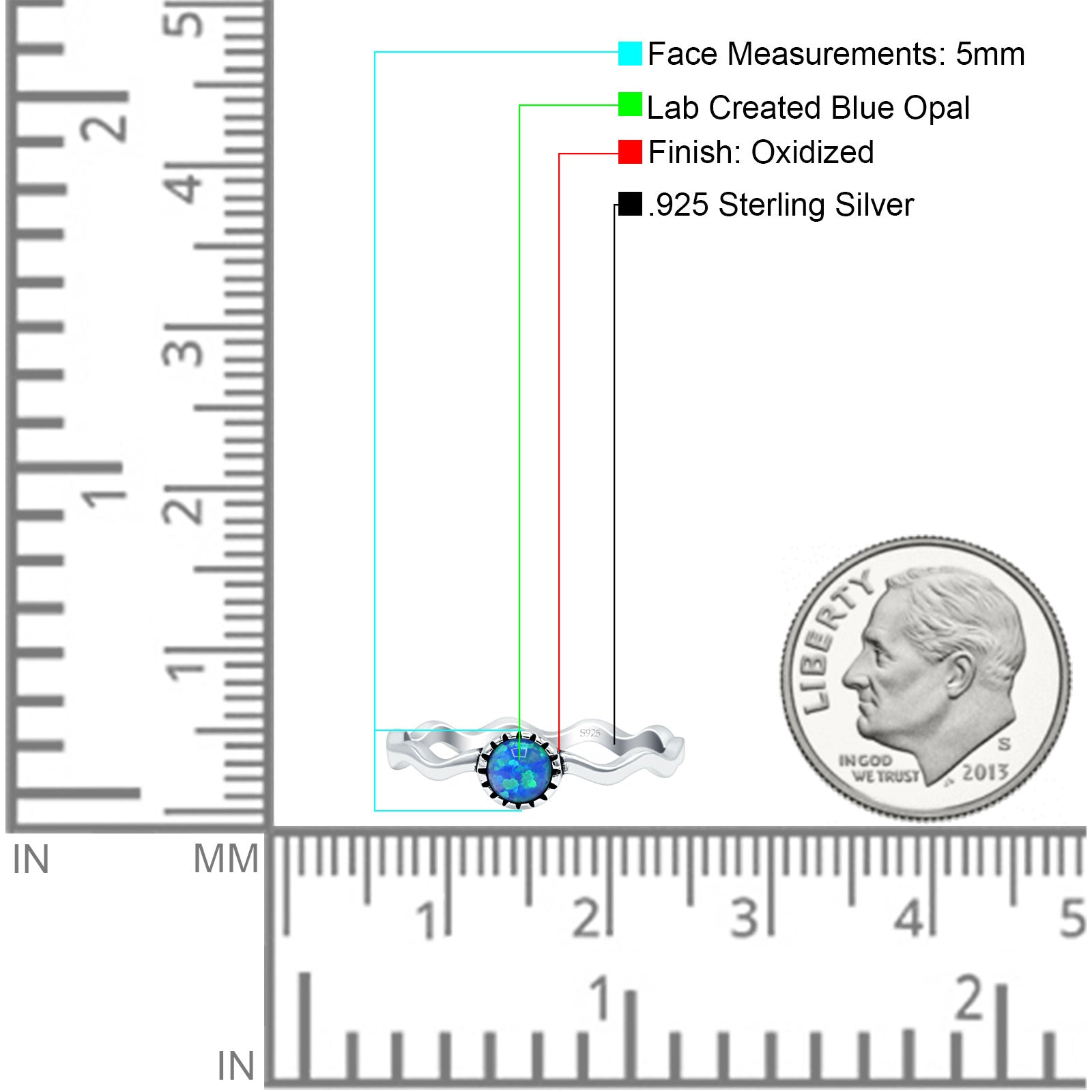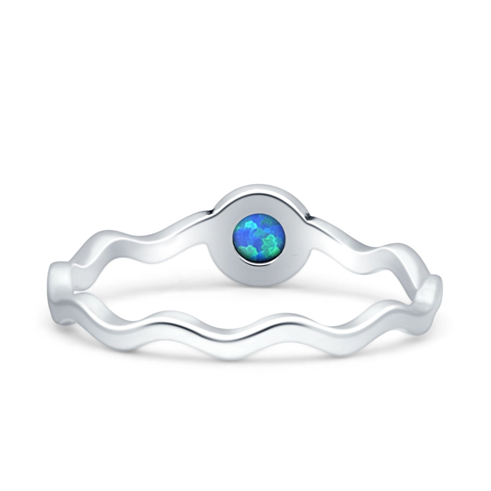Round Lab Created Blue Opal Solitaire Ring Oxidized 925 Sterling Silver Wholesale