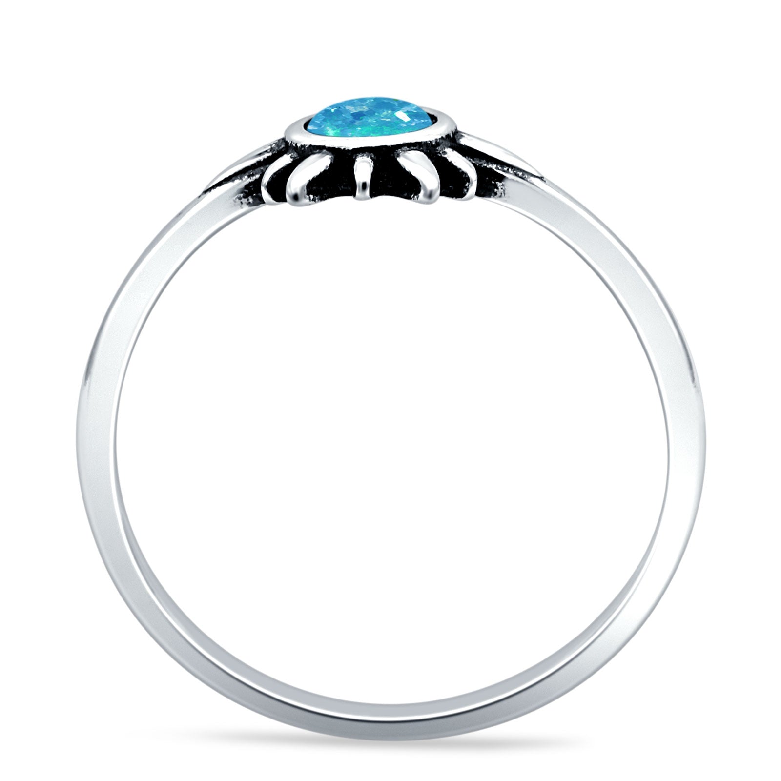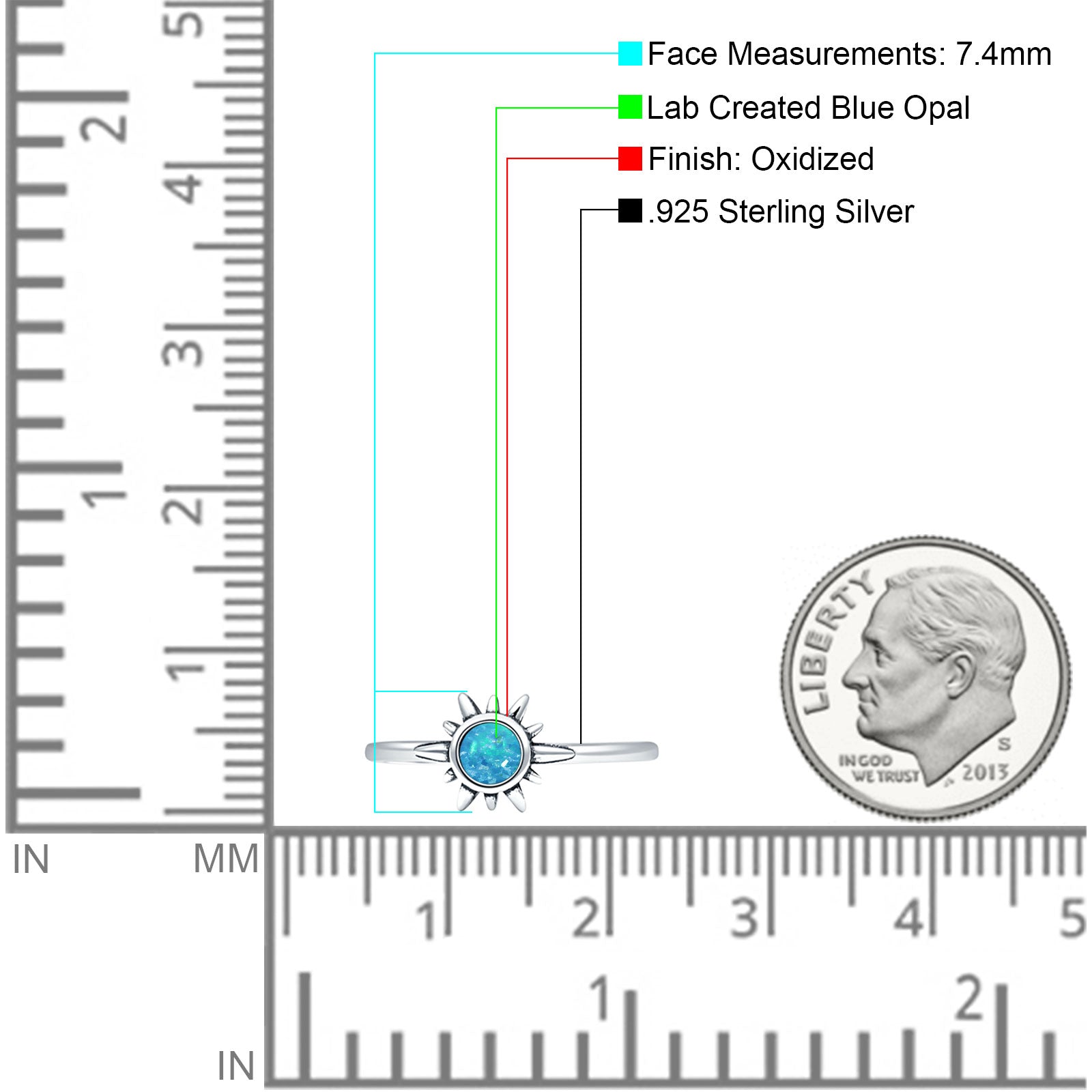 Round Lab Created Blue Opal Sun Ring Oxidized 925 Sterling Silver Wholesale
