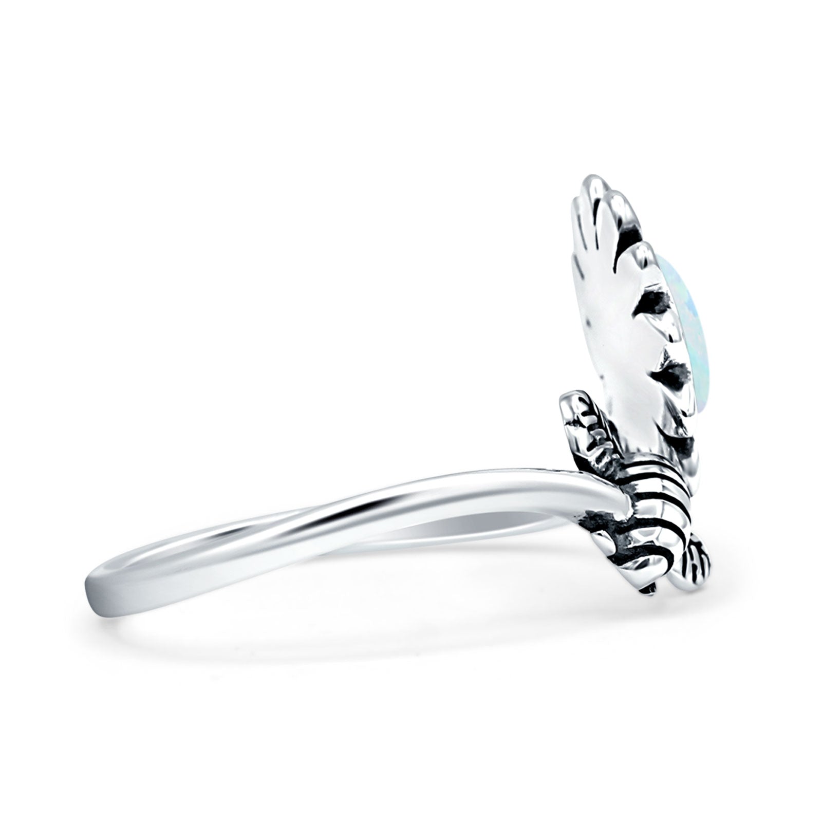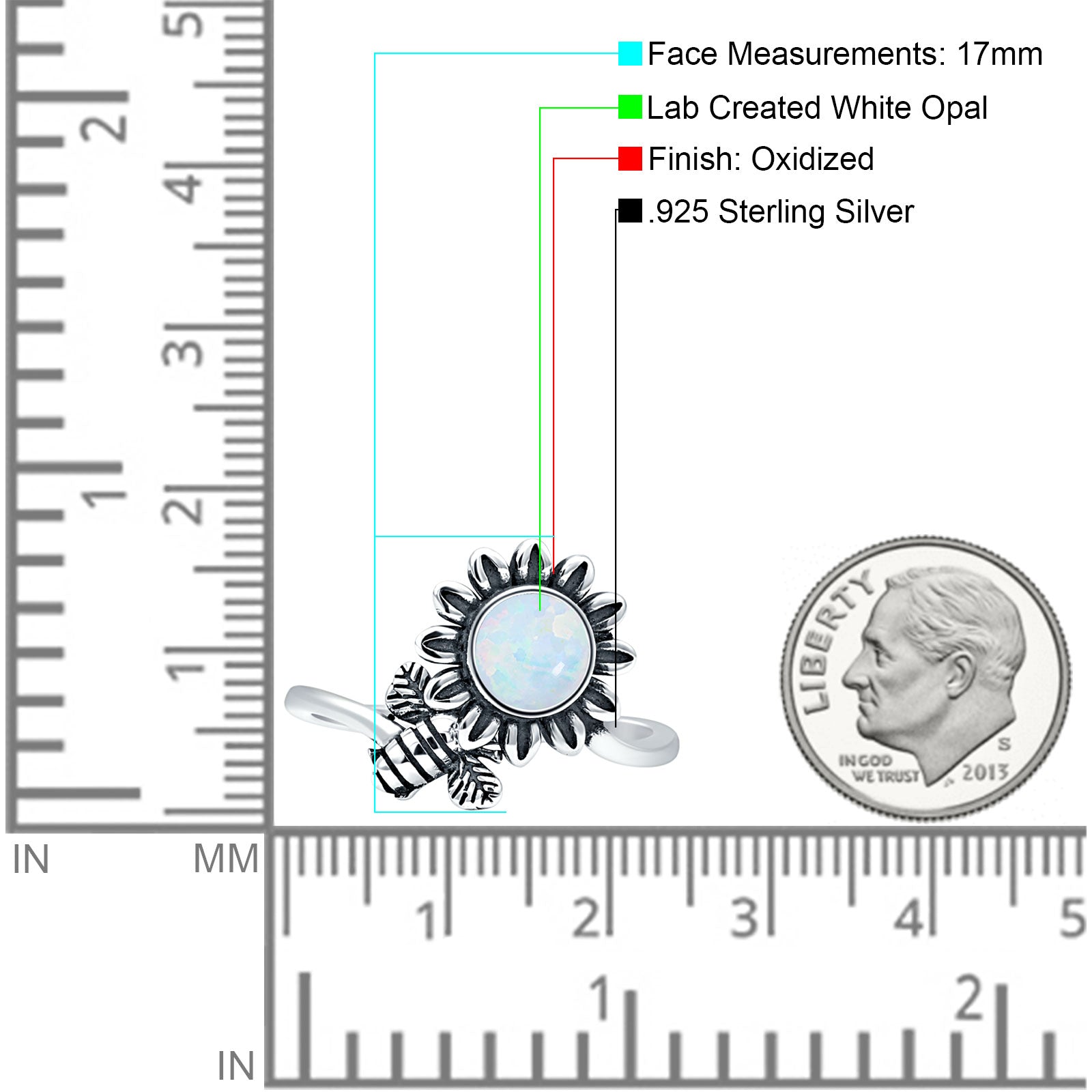Round Lab Created White Opal Flower & Bee Ring Oxidized 925 Sterling Silver Wholesale