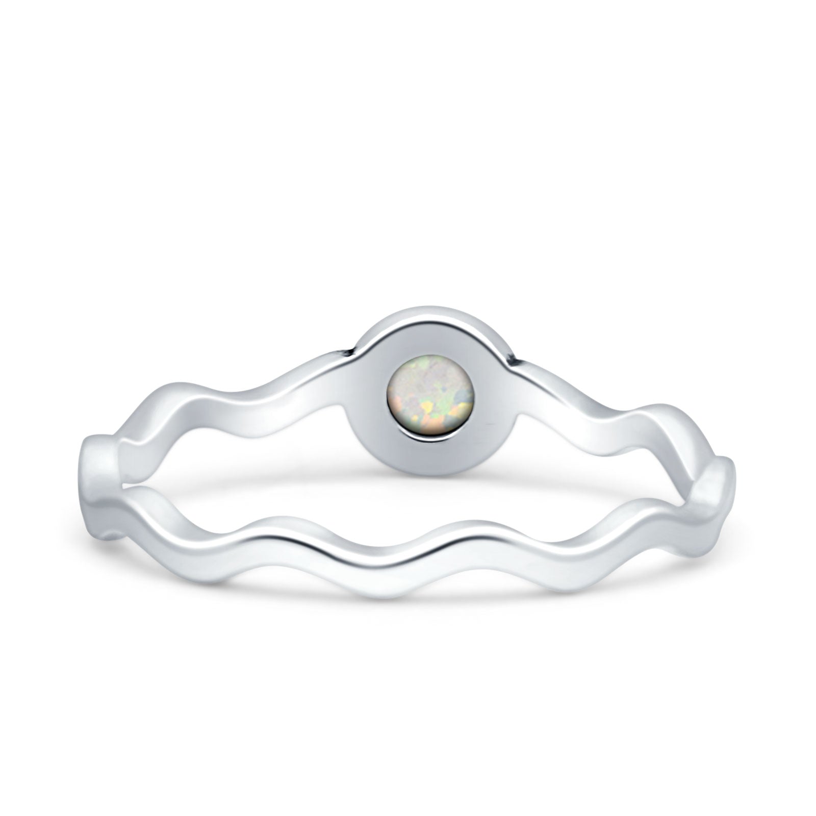 Round Lab Created White Opal Solitaire Ring Oxidized 925 Sterling Silver Wholesale