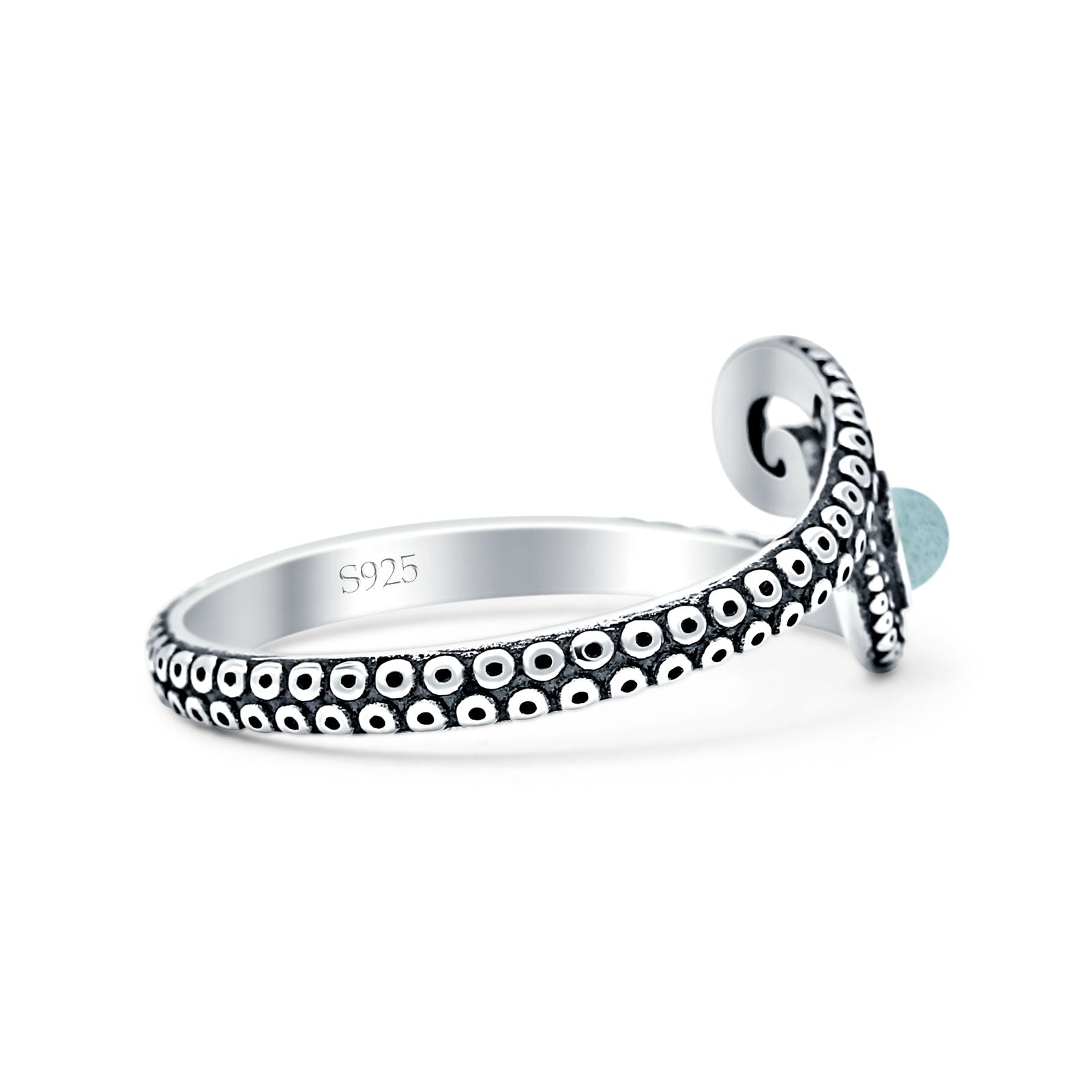 Round Larimar Octopus Tentacle Ring Oxidized 925 Sterling Silver Wholesale