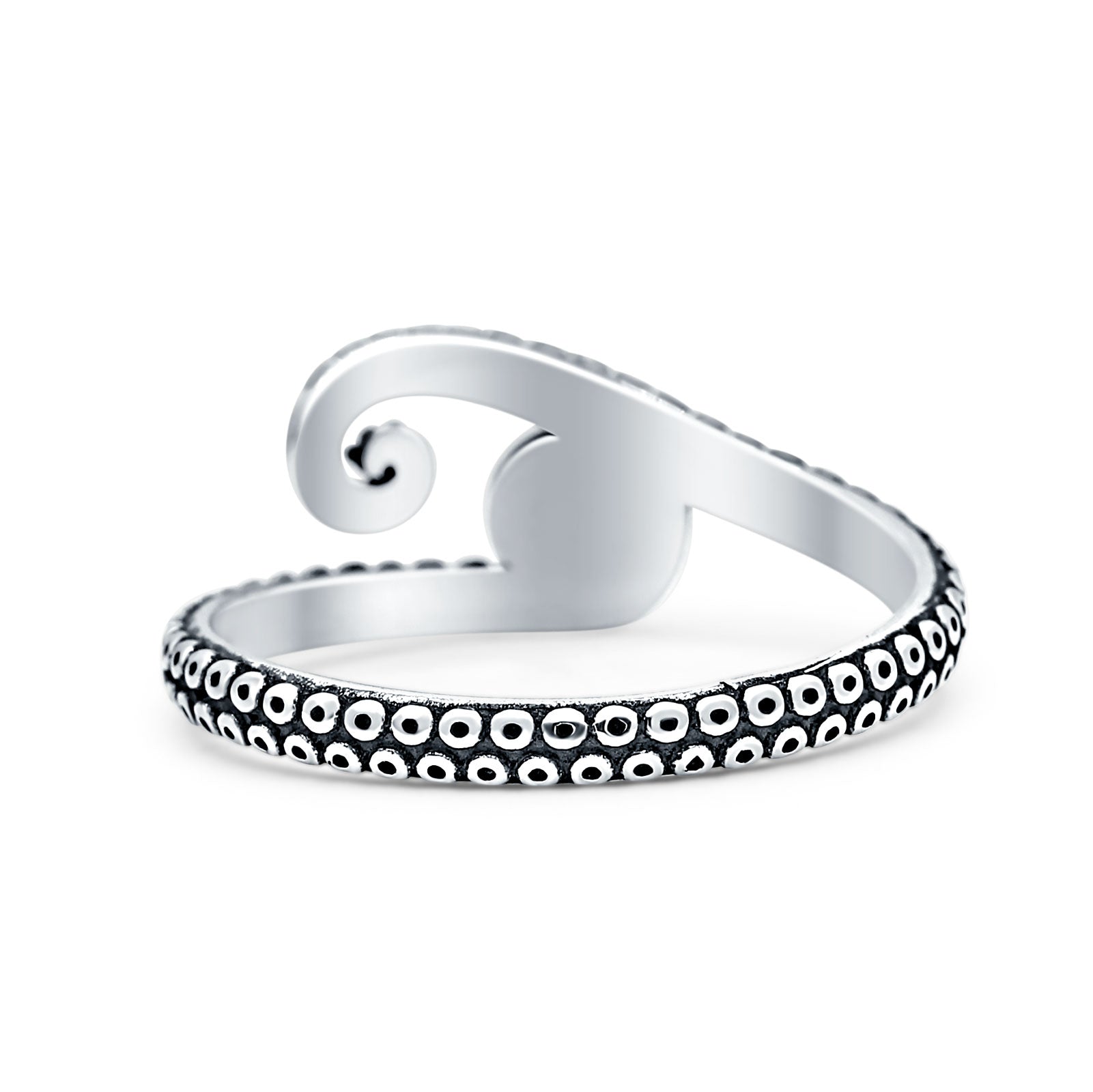 This art deco octopus tentacle ring features an 8.7mm round larimar set in 925 sterling silver with an oxidized vintage finish for bold, antique appeal. The sculpted tentacle design symbolizes strength and mystery, making it a striking statement piece. Perfect for everyday wear or as a unique gift for her.