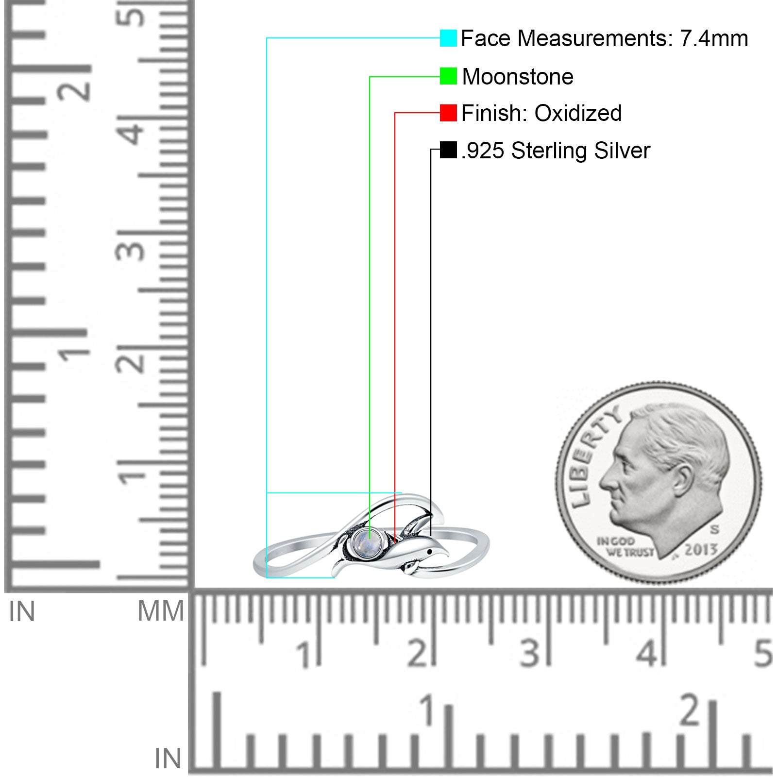 Round Moonstone Dolphin & Wave Ring Oxidized 925 Sterling Silver Wholesale