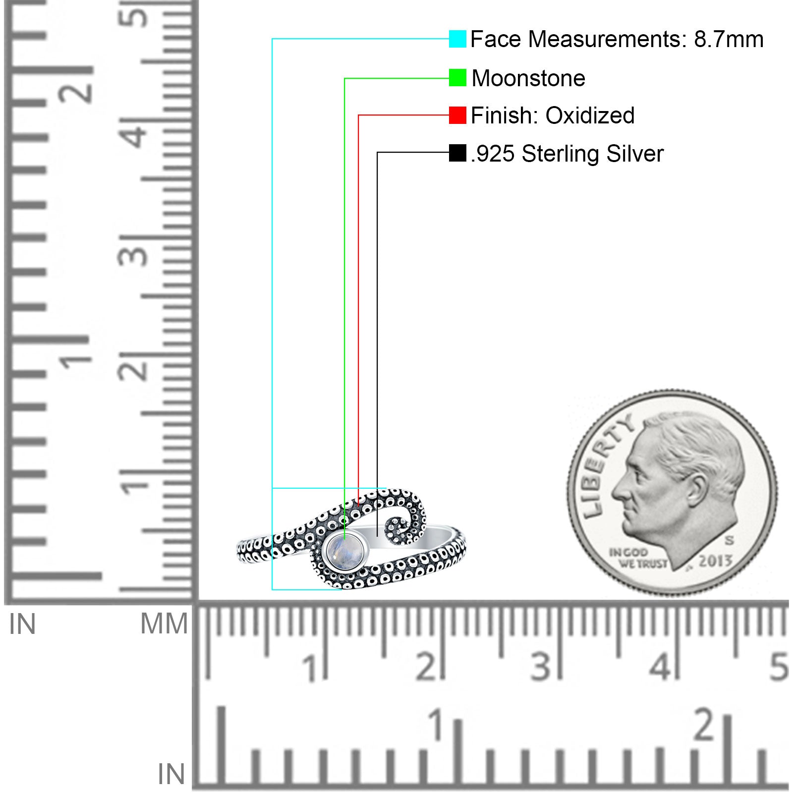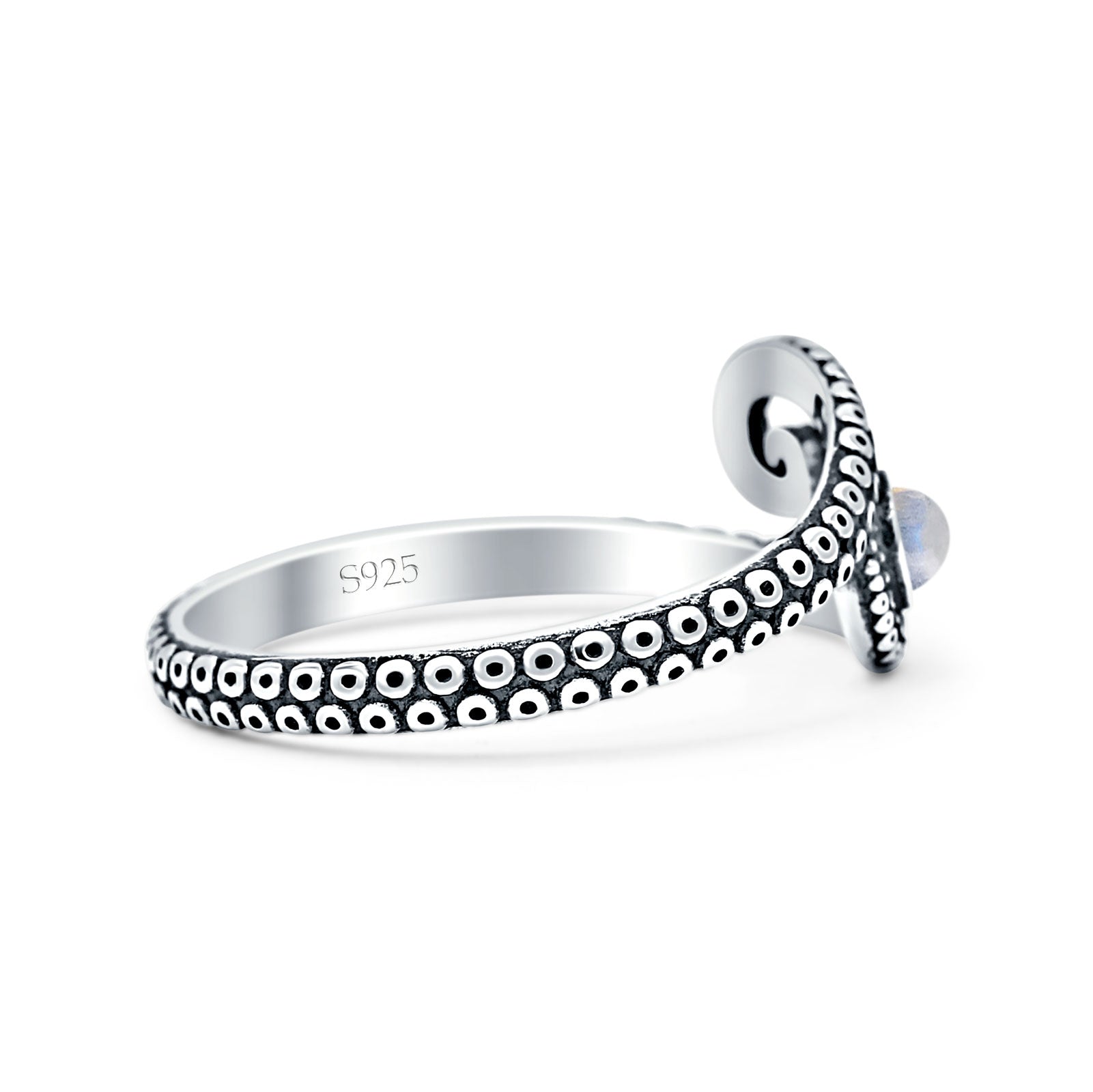 Round Moonstone Octopus Tentacle Ring Oxidized 925 Sterling Silver Wholesale