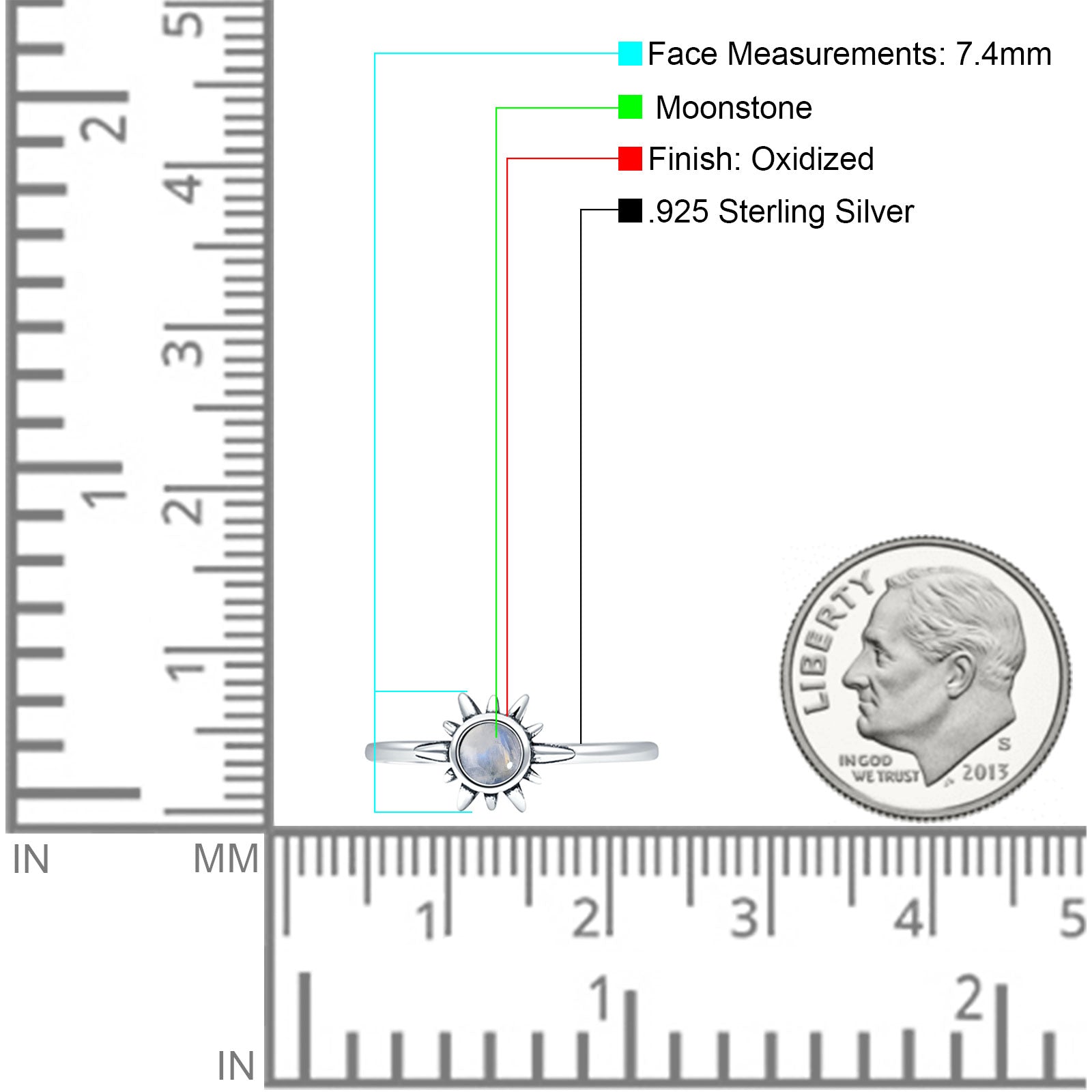 Round Moonstone Sun Ring Oxidized 925 Sterling Silver Wholesale