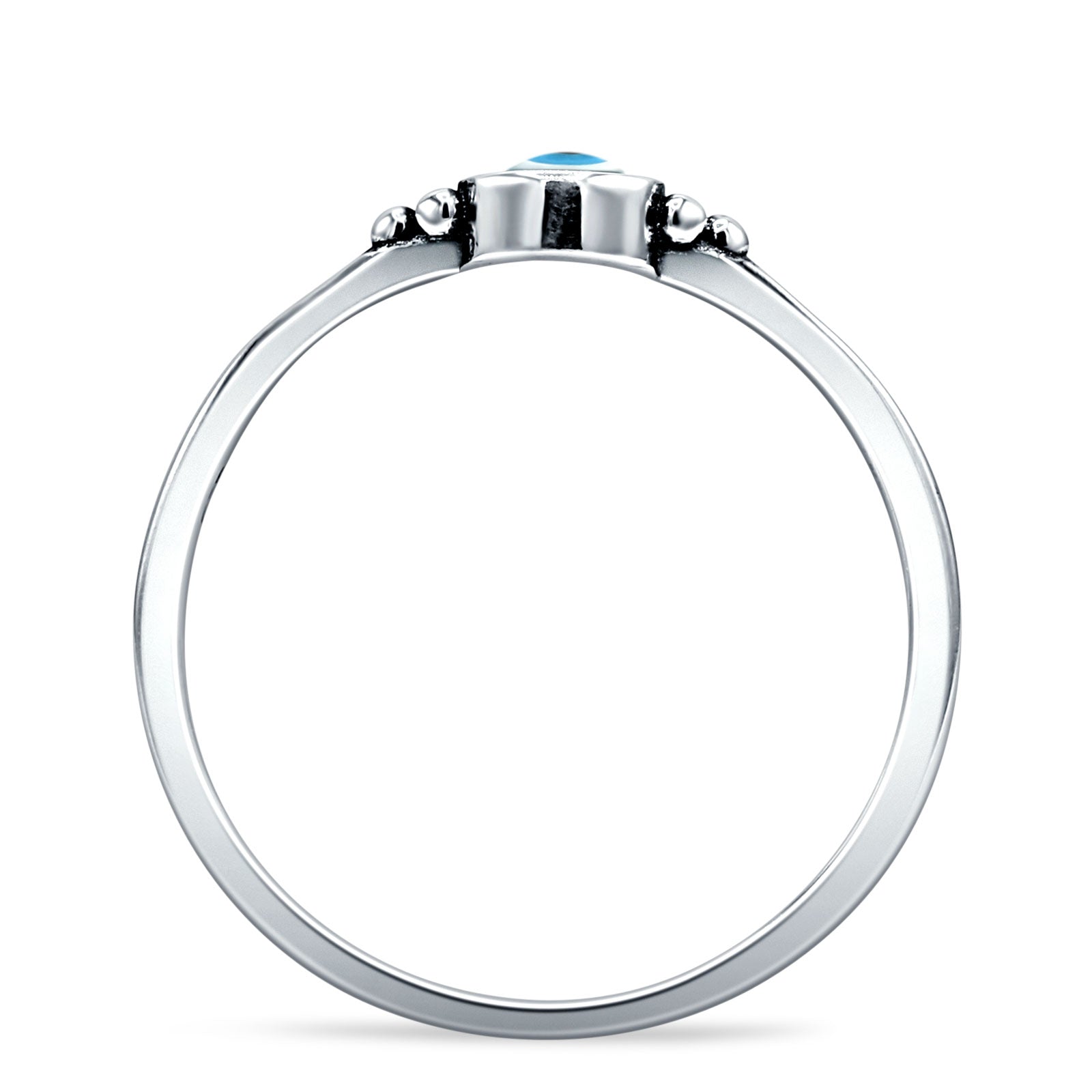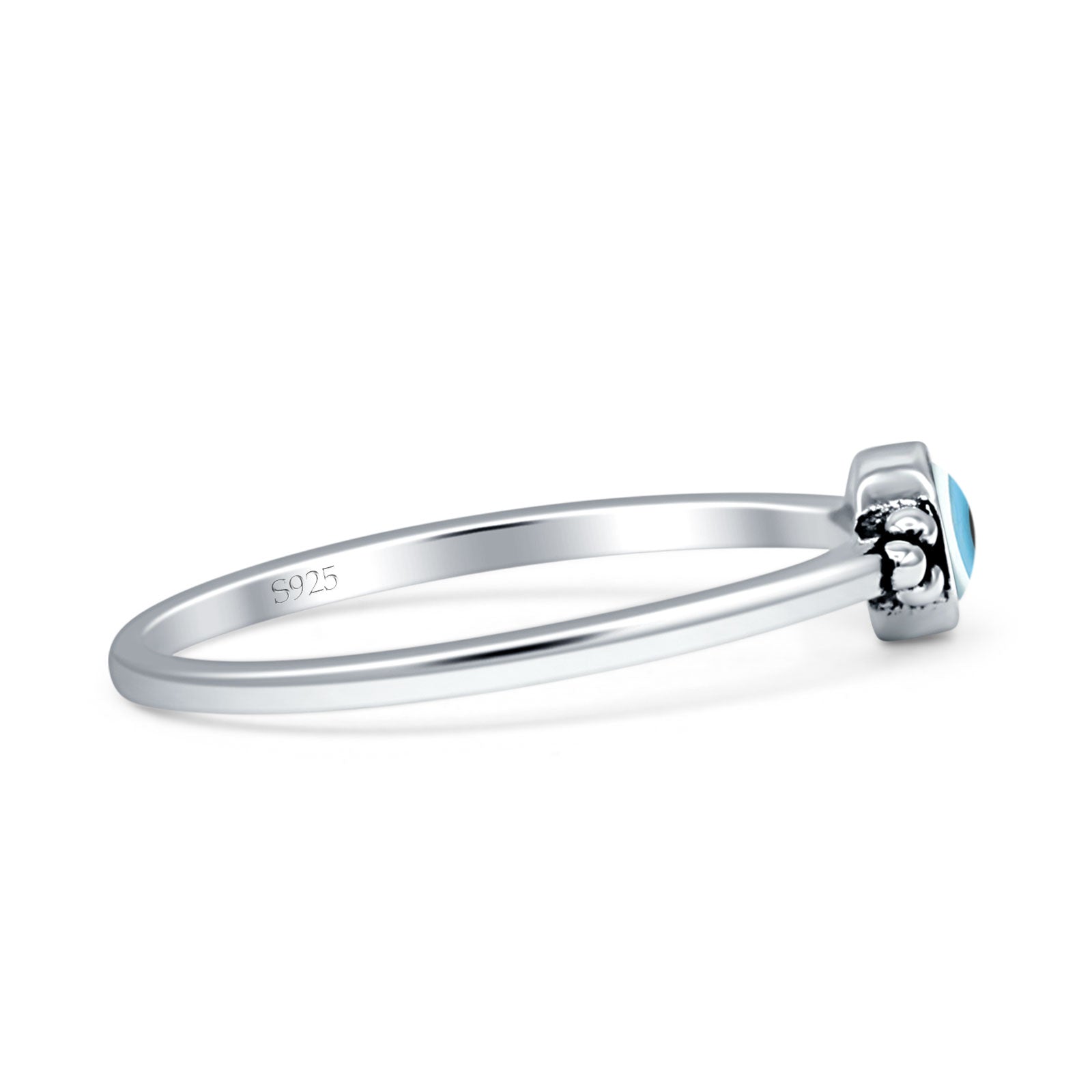 Round Mother Of Pearl Evil Eye Ring Oxidized 925 Sterling Silver Wholesale