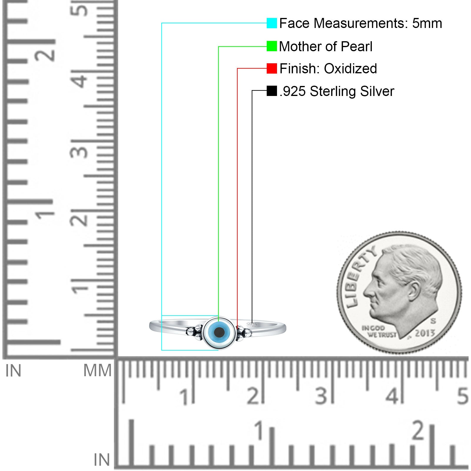 This art deco 5mm round Mother Of Pearl evil eye ring is made with oxidized 925 sterling silver with charming details of vintage styling and a Mother Of Pearl center for protection. A lightweight, stylish and meaningful statement ring appropriate for everyday wear. This is a great retail collection item, and makes a memorable gift for her.