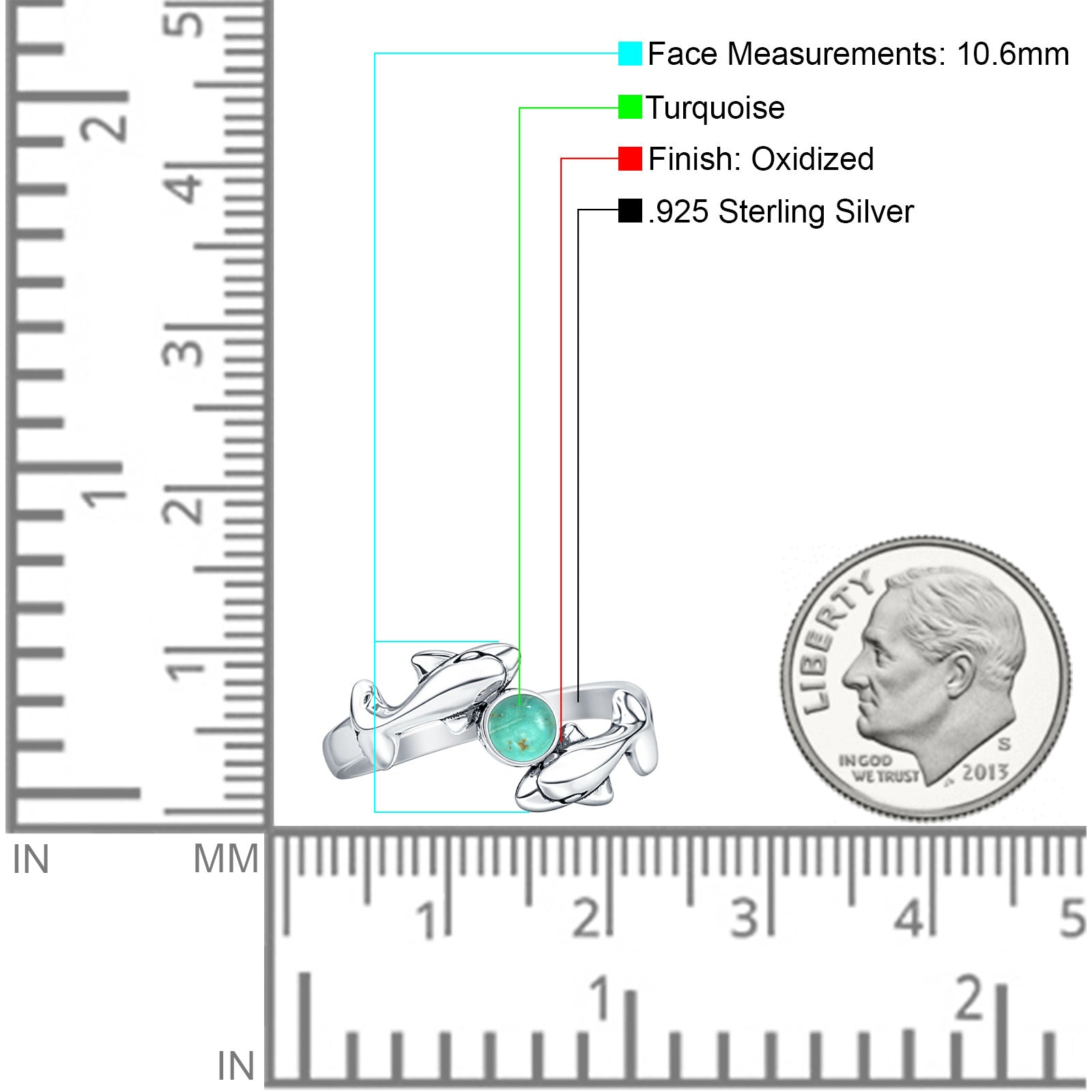 Round Turquoise Dolphin Ring Oxidized 925 Sterling Silver Wholesale