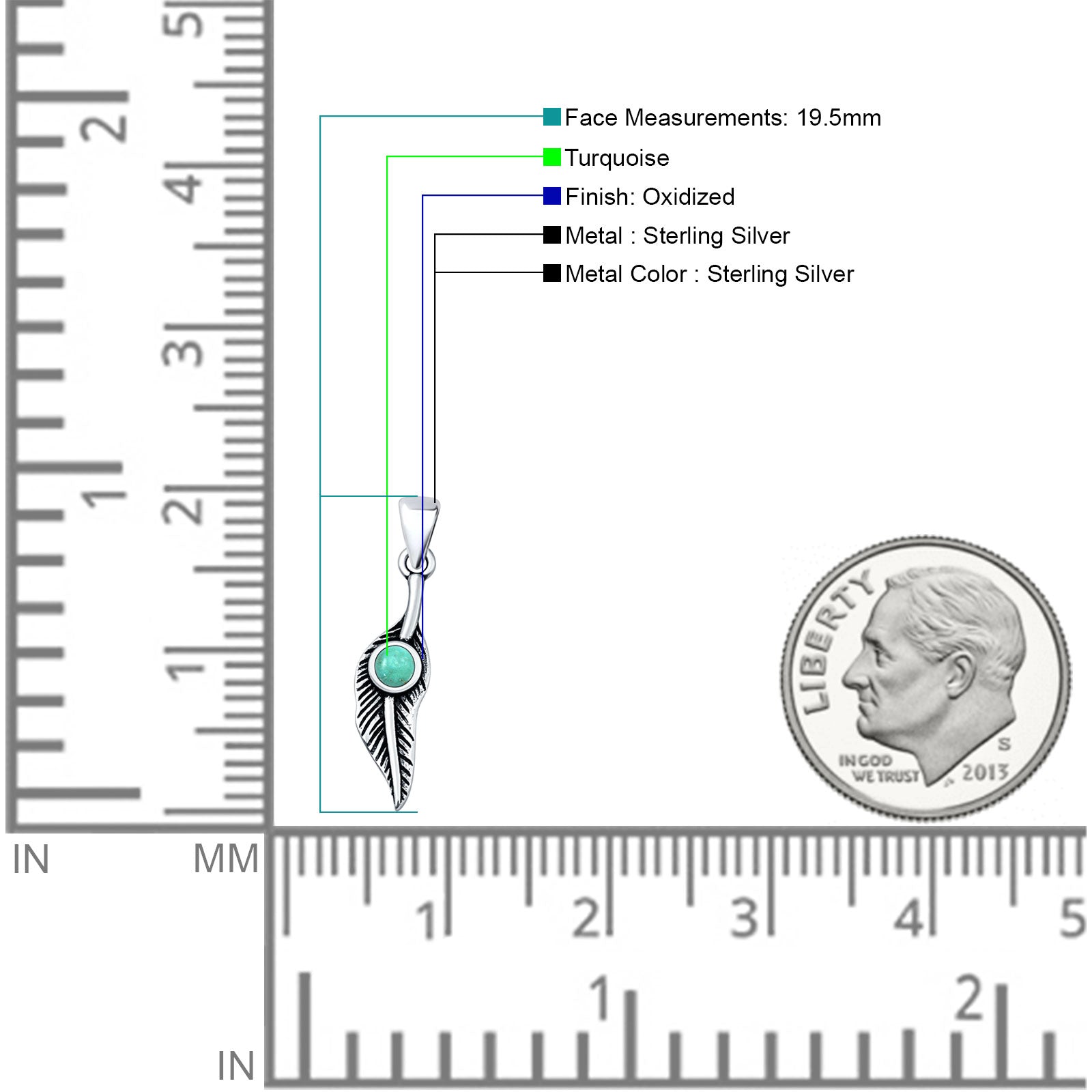 Turquoise Feather Pendant Oxidized 925 Sterling Silver