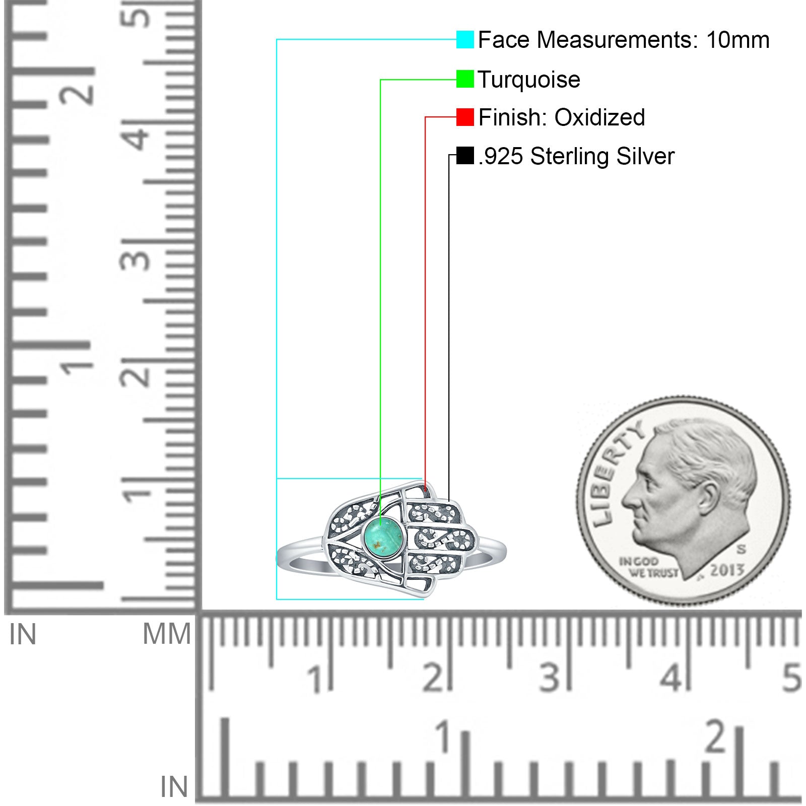 Round Turquoise Hamsa Hand Ring Oxidized 925 Sterling Silver