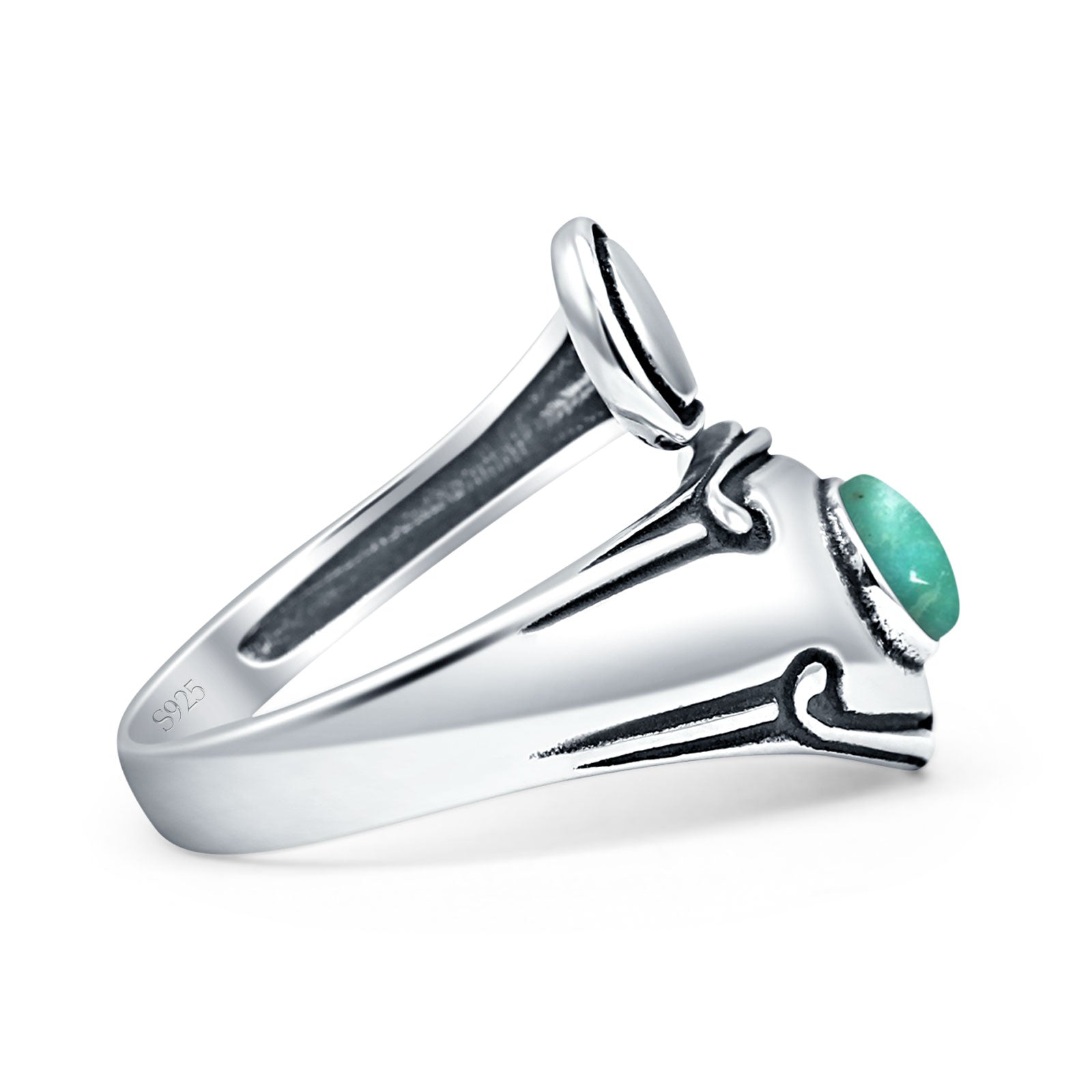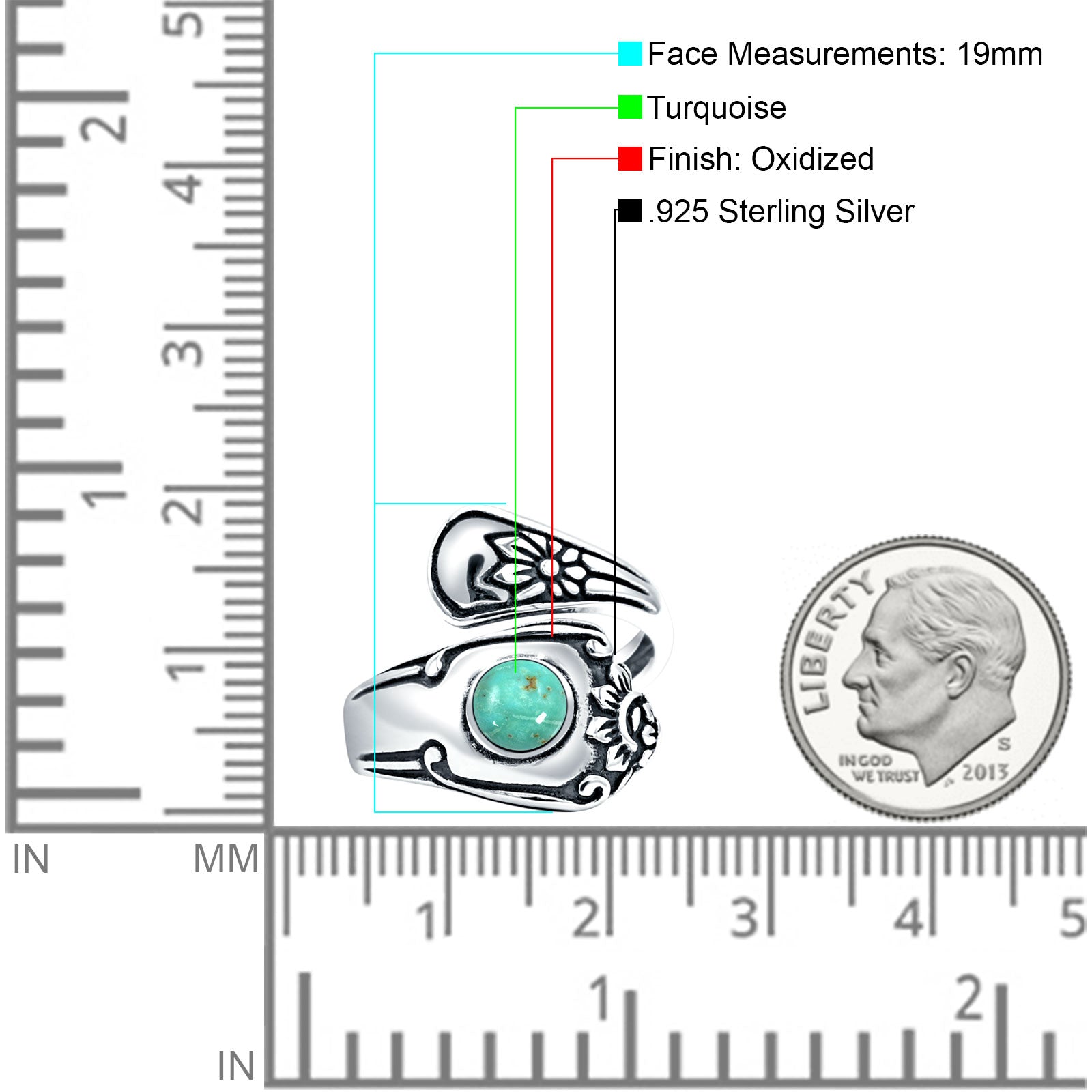 Round Turquoise Silver Spoon Ring Oxidized 925 Sterling Silver Wholesale