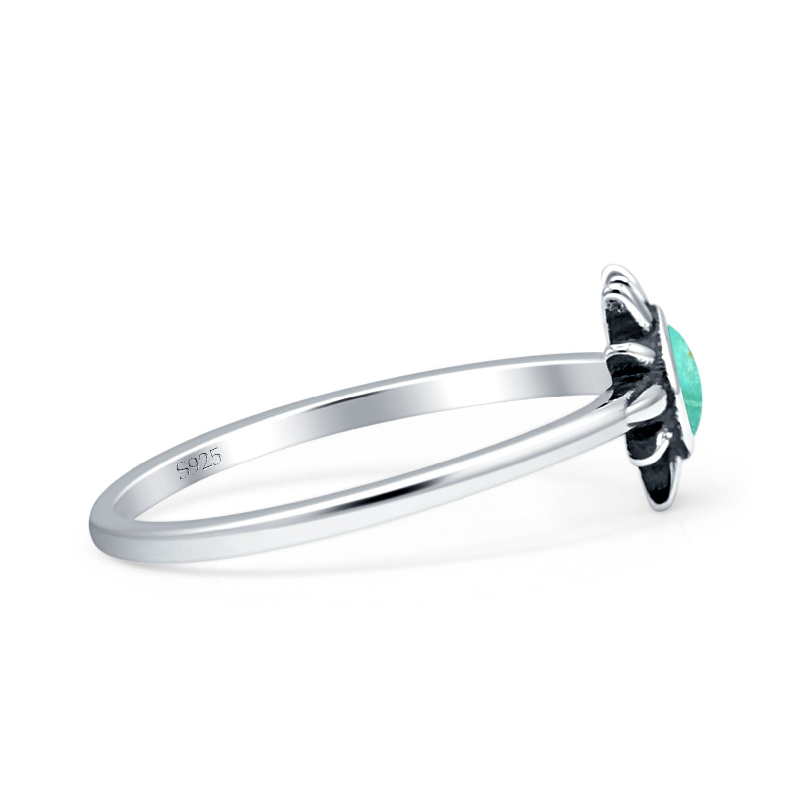 Round Turquoise Sun Ring Oxidized 925 Sterling Silver Wholesale