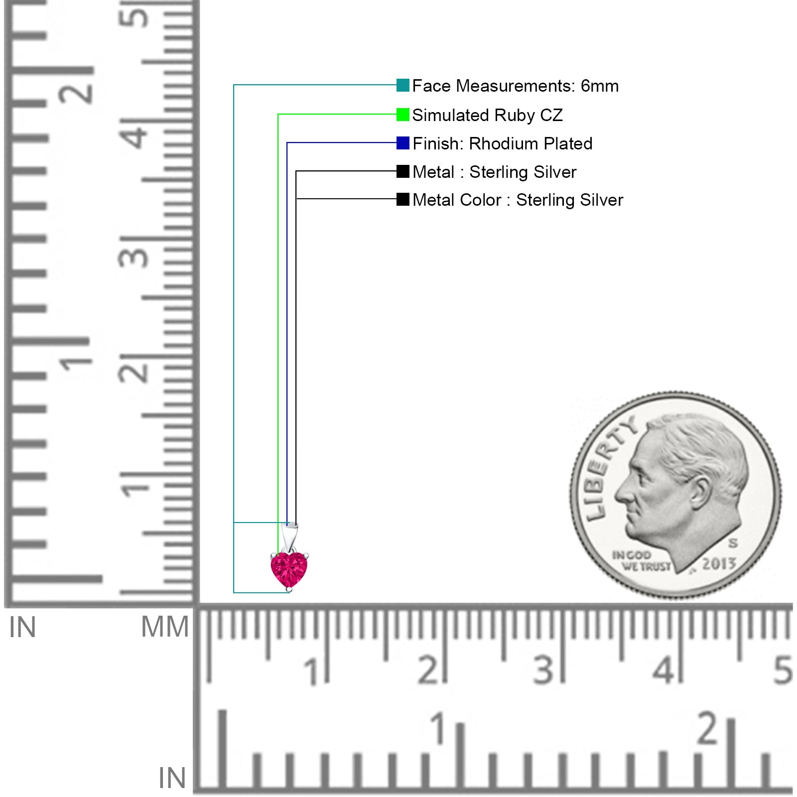 Ruby CZ Heart Pendant 925 Sterling Silver