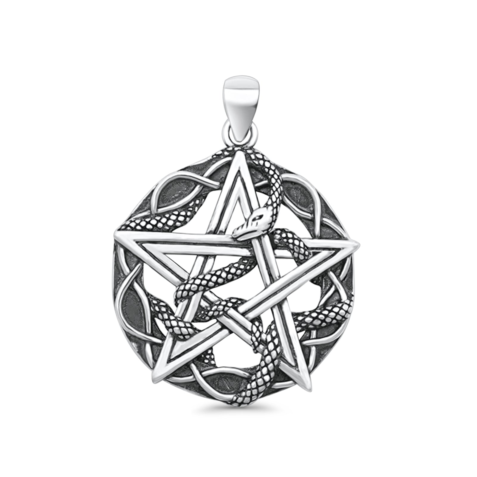 Snake & Pentagram Pendant Oxidized 925 Sterling Silver Wholesale