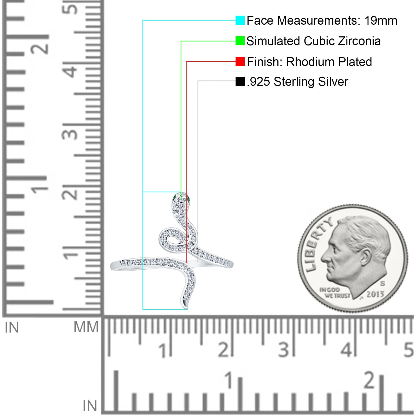Snake Ring Cubic Zirconia 925 Sterling Silver Wholesale
