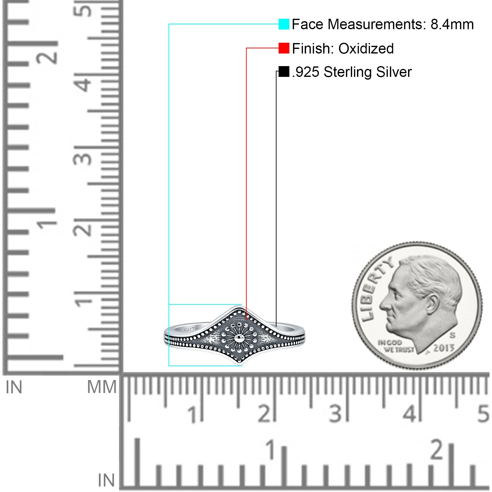 Made from 925 sterling silver, this Sunburst Ring features an elegant 8.4mm design inspired by radiant celestial beauty. Its vintage minimalist style pairs a smooth polished finish with delicate detailing, creating a refined yet eye-catching statement piece. Meaningful and versatile, it is perfect for everyday wear or as a thoughtful gift.