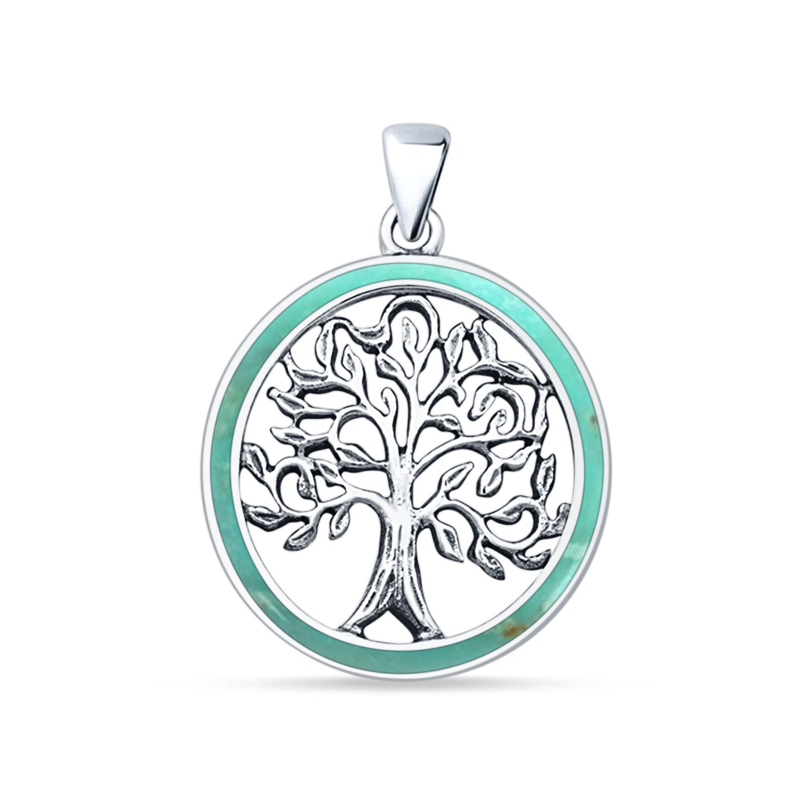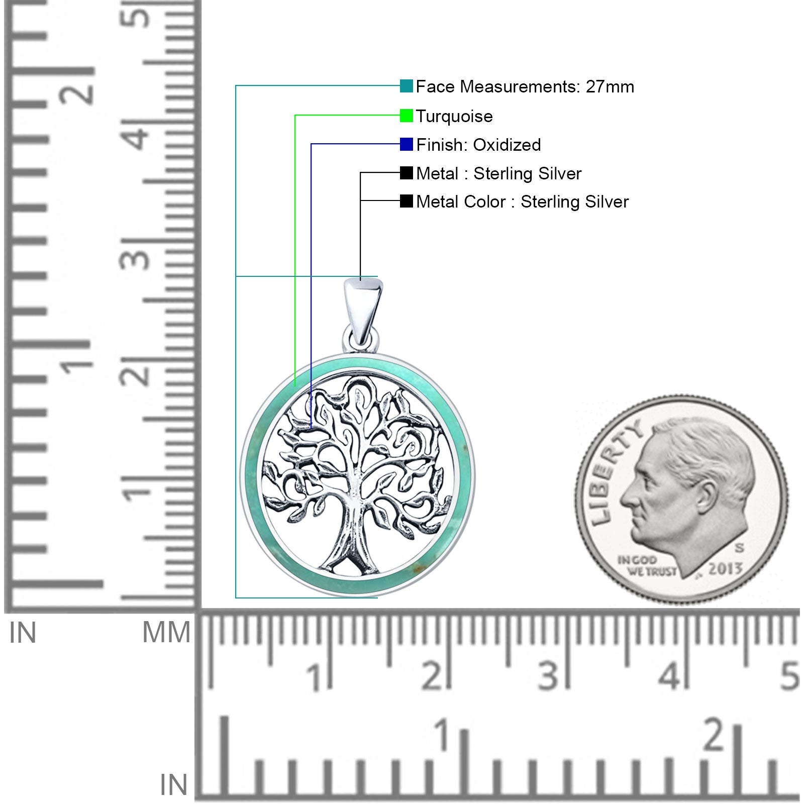 Turquoise Tree of Life Pendant Oxidized 925 Sterling Silver